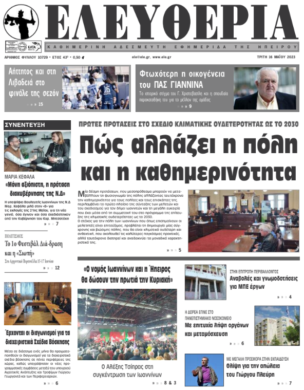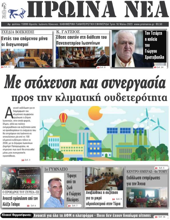 ΑρχικήΕΙΔΗΣΕΙΣΗΠΕΙΡΟΣ ΗΠΕΙΡΟΣ Τα πρωτοσέλιδα των γιαννιώτικων εφημερίδων 16.05.2023 1335 FacebookTwitterWhatsAppEmailΤυπώνωViber Διαβάστε στα πρωτοσέλιδα των γιαννιώτικων εφημερίδων της Τρίτης 16 Μαΐου TagsΓΙΑΝΝΙΩΤΙΚΕΣ ΕΦΗΜΕΡΙΔΕΣΠΡΩΤΟΣΕΛΙΔΑ FacebookTwitterWhatsAppEmailΤυπώνωViber Προηγούμενο άρθροΤσίπρας: Η νίκη του ΣΥΡΙΖΑ στις 21 Μαΐου θα ανοίξει τον δρόμο για την αλλαγήΕπόμενο άρθροΑναβολές και γνωμοδοτήσεις για ΜΠΕ έργων ΣΧΕΤΙΚΑ ΑΡΘΡΑ Τα πρωτοσέλιδα των γιαννιώτικων εφημερίδων TOP STORIES 24.12.2025 Τα πρωτοσέλιδα των γιαννιώτικων εφημερίδων ΗΠΕΙΡΟΣ 23.12.2025 Τα πρωτοσέλιδα των γιαννιώτικων εφημερίδων ΗΠΕΙΡΟΣ 19.12.2025 Τα πρωτοσέλιδα των γιαννιώτικων εφημερίδων ΗΠΕΙΡΟΣ 18.12.2025 Τα πρωτοσέλιδα των γιαννιώτικων εφημερίδων ΗΠΕΙΡΟΣ 17.12.2025 Τα πρωτοσέλιδα των γιαννιώτικων εφημερίδων ΗΠΕΙΡΟΣ 16.12.2025 ΣΤΗΝ ΙΔΙΑ ΚΑΤΗΓΟΡΙΑ Έντονες αντιδράσεις στα κεντρικά προκαλεί το πρωτοσέλιδο των «Πρωινών Νέων» ΗΠΕΙΡΟΣ 24.12.2025 Επιτυχημένη παρουσίαση των αποτελεσμάτων του προγράμματος GINGER για την πρόληψη της άνοιας ΗΠΕΙΡΟΣ 24.12.2025 Ηλεκτρονική βεβαίωση παραβάσεων από τη Δημοτική Αστυνομία Ιωαννίνων ΗΠΕΙΡΟΣ 24.12.2025 Χριστουγεννιάτικες μελωδίες και ευχές στο Δημαρχείο Ιωαννίνων ΗΠΕΙΡΟΣ 24.12.2025 Ιωάννινα: Συνελήφθη ιδιοκτήτης καταστήματος για διάθεση αλκοόλ σε ανηλίκους ΗΠΕΙΡΟΣ 24.12.2025 Τα πρωτοσέλιδα των γιαννιώτικων εφημερίδων TOP STORIES 24.12.2025 ΜΗ ΧΑΣΕΤΕ Έντονες αντιδράσεις στα κεντρικά προκαλεί το πρωτοσέλιδο των «Πρωινών Νέων» Λήγει στις 31 Δεκεμβρίου η προθεσμία για τα τέλη κυκλοφορίας 2026 Χριστουγεννιάτικη έξοδος με αυξημένη κίνηση και αγροτικά μπλόκα Ανοιχτά τα καταστήματα την παραμονή Χριστουγέννων Κακοκαιρία τα Χριστούγεννα – Ισχυρά φαινόμενα σε πολλές περιοχές ΔΗΜΟΦΙΛΗ Ιταλία: Ισχυρή έκρηξη σε αυτοκινητόδρομο μετά από σύγκρουση φορτηγού με υγροποιημένο αέριο Προφυλακισμένοι οι δώδεκα κατηγορούμενοι για διακίνηση ναρκωτικών σε σχολεία Ληστείες σε βάρος ανηλίκων που έλεγαν τα κάλαντα Σιόντης: «Ο ΠΑΣ δοκιμάζεται, αλλά παραμένει όρθιος και ανήκει σε όσους τον αγαπούν» Επιτυχημένη παρουσίαση των αποτελεσμάτων του προγράμματος GINGER για την πρόληψη της άνοιας