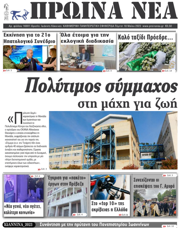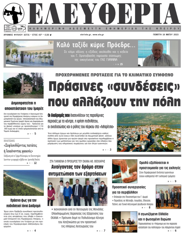 ΑρχικήΕΙΔΗΣΕΙΣΗΠΕΙΡΟΣ ΗΠΕΙΡΟΣ Τα πρωτοσέλιδα των γιαννιώτικων εφημερίδων 18.05.2023 1238 FacebookTwitterWhatsAppEmailΤυπώνωViber Διαβάστε στα πρωτοσέλιδα των γιαννιώτικων εφημερίδων της Πέμπτης 18 Μαΐου TagsΓΙΑΝΝΙΩΤΙΚΕΣ ΕΦΗΜΕΡΙΔΕΣΠΡΩΤΟΣΕΛΙΔΑ FacebookTwitterWhatsAppEmailΤυπώνωViber Προηγούμενο άρθροΣτο Ευρωπαϊκό Πρωτάθλημα Εφήβων-Νεανίδων με την Εθνική Ομάδα έξι αθλητές του Ν.Ο.Ι.Επόμενο άρθροΞεκίνησαν οι εργασίες του 21ου Πανελλήνιου Ηπατολογικού Συνεδρίου ΣΧΕΤΙΚΑ ΑΡΘΡΑ Τα πρωτοσέλιδα των γιαννιώτικων εφημερίδων TOP STORIES 13.11.2025 Τα πρωτοσέλιδα των γιαννιώτικων εφημερίδων ΗΠΕΙΡΟΣ 12.11.2025 Τα πρωτοσέλιδα των γιαννιώτικων εφημερίδων ΗΠΕΙΡΟΣ 11.11.2025 Τα πρωτοσέλιδα των γιαννιώτικων εφημερίδων TOP STORIES 08.11.2025 Τα πρωτοσέλιδα των γιαννιώτικων εφημερίδων ΗΠΕΙΡΟΣ 07.11.2025 Τα πρωτοσέλιδα των γιαννιώτικων εφημερίδων ΗΠΕΙΡΟΣ 06.11.2025 ΣΤΗΝ ΙΔΙΑ ΚΑΤΗΓΟΡΙΑ Τιμητική διάκριση για τον Διευθυντή της Ογκολογικής Κλινικής του ΠΓΝΙ, Στέργιο Μπούσιο ΗΠΕΙΡΟΣ 13.11.2025 Χρηματοδοτείται η επέκταση του Γηροκομείου Φιλιατών ΗΠΕΙΡΟΣ 13.11.2025 Έντονη διαμαρτυρία για την ανακατανομή της έκτακτης καταβολής των ΚΑΠ ΗΠΕΙΡΟΣ 13.11.2025 Δένδρο στην πλατεία, συναυλία στο Πνευματικό Κέντρο; ΗΠΕΙΡΟΣ 13.11.2025 «Λεόντειοι όροι» στη σύμβαση για τα LED ΗΠΕΙΡΟΣ 13.11.2025 Σχέδιο Ασφάλειας Νερού και οριοθέτηση ζωνών προστασίας ΗΠΕΙΡΟΣ 13.11.2025 ΜΗ ΧΑΣΕΤΕ Δένδρο στην πλατεία, συναυλία στο Πνευματικό Κέντρο; «Λεόντειοι όροι» στη σύμβαση για τα LED Συνεργασία με τον ΟΦΥΠΕΚΑ για το παραλίμνιο μέτωπο του Δήμου Ιωαννιτών Στο… περίμενε οι πυρόπληκτοι του Δήμου Ζηρού Πρόταση για Β’ Κλειστό και Κολυμβητήριο ΔΗΜΟΦΙΛΗ Παπασταύρου: Αμερικανικό επενδυτικό ενδιαφέρον για το καλώδιο Ελλάδας-Κύπρου «Λεόντειοι όροι» στη σύμβαση για τα LED Τσίμαρης: Η Υγεία χρειάζεται στήριξη, σχέδιο και σεβασμό στους ανθρώπους της Πρόταση για Β’ Κλειστό και Κολυμβητήριο Μονόδρομος η νίκη απέναντι στον Νέστο