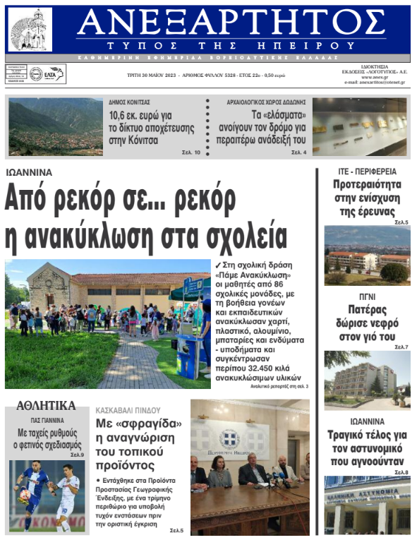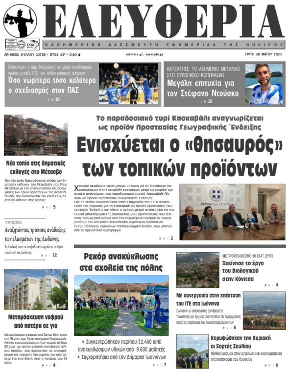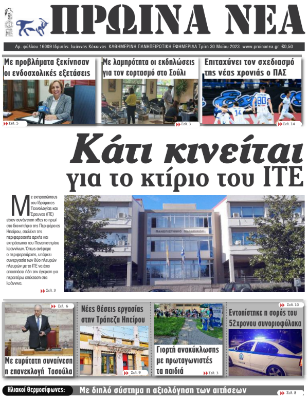 Διαβάστε στα πρωτοσέλιδα των γιαννιώτικων εφημερίδων της Τρίτης 30 Μαΐου