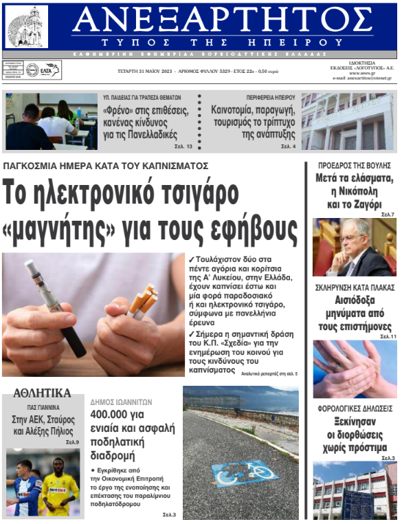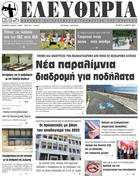 ΑρχικήΕΙΔΗΣΕΙΣΗΠΕΙΡΟΣ ΗΠΕΙΡΟΣ Τα πρωτοσέλιδα των γιαννιώτικων εφημερίδων 31.05.2023 1232 FacebookTwitterWhatsAppEmailΤυπώνωViber Διαβάστε στα πρωτοσέλιδα των γιαννιώτικων εφημερίδων της Τετάρτης 31 Μαΐου TagsΓΙΑΝΝΙΩΤΙΚΕΣ ΕΦΗΜΕΡΙΔΕΣΠΡΩΤΟΣΕΛΙΔΑ FacebookTwitterWhatsAppEmailΤυπώνωViber Προηγούμενο άρθροGoogle: Προβλέψεις κινδύνου πλημμύρας τώρα και για την ΕλλάδαΕπόμενο άρθροΟι προοπτικές με βάση τον απολογισμό του 2022 ΣΧΕΤΙΚΑ ΑΡΘΡΑ Τα πρωτοσέλιδα των γιαννιώτικων εφημερίδων TOP STORIES 13.01.2026 Τα πρωτοσέλιδα των γιαννιώτικων εφημερίδων ΗΠΕΙΡΟΣ 11.01.2026 Τα πρωτοσέλιδα των γιαννιώτικων εφημερίδων ΗΠΕΙΡΟΣ 09.01.2026 Τα πρωτοσέλιδα των γιαννιώτικων εφημερίδων ΗΠΕΙΡΟΣ 08.01.2026 Τα πρωτοσέλιδα των γιαννιώτικων εφημερίδων ΗΠΕΙΡΟΣ 06.01.2026 Τα πρωτοσέλιδα των γιαννιώτικων εφημερίδων ΗΠΕΙΡΟΣ 01.01.2026 ΣΤΗΝ ΙΔΙΑ ΚΑΤΗΓΟΡΙΑ ΕΞΑΙΤΙΑΣ ΤΩΝ ΧΑΜΗΛΩΝ ΘΕΡΜΟΚΡΑΣΙΩΝ -Νωρίτερα η βραδινή αποκομιδή ΗΠΕΙΡΟΣ 13.01.2026 Με λαμπρότητα εορτάστηκε η μνήμη του Αγίου Ιερεμία στη Ζίτσα ΗΠΕΙΡΟΣ 13.01.2026 Γεωργόπουλος για Περιφέρεια Ηπείρου: «Αναγκαία αλλαγή ηγεσίας και διαφάνειας» ΗΠΕΙΡΟΣ 13.01.2026 Στην Κομισιόν οι διακοπές ρεύματος στην Ήπειρο ΗΠΕΙΡΟΣ 13.01.2026 Αντιδράσεις για τη συμφωνία Ε.Ε. – Mercosur και επιπτώσεις στον πρωτογενή τομέα της Ηπείρου ΗΠΕΙΡΟΣ 13.01.2026 Άμεση σύλληψη για κλοπή τσάντας από Ι.Χ. ΗΠΕΙΡΟΣ 13.01.2026 ΜΗ ΧΑΣΕΤΕ Το σχέδιο του Δήμου Ιωαννιτών για την αντιμετώπιση του κυκλοφοριακού προβλήματος Περιβαλλοντική καταστροφή στο Μονολίθι Πλημμύρισε ο χώρος πλύσης των απορριμματοφόρων του Δήμου «Μυρίζει συγκάλυψη ευθυνών» Δοκιμάζονται οι αντοχές των επιχειρήσεων ΔΗΜΟΦΙΛΗ Η Γροιλανδία αποκλείει κάθε ενδεχόμενο ελέγχου από τις ΗΠΑ Συνάντηση Τασούλα – Πιερρακάκη για την ελληνική οικονομία και τις ευρωπαϊκές προκλήσεις Πλημμύρισε ο χώρος πλύσης των απορριμματοφόρων του Δήμου ΠΑΣΟΚ: Κριτική για την Εξεταστική ΟΠΕΚΕΠΕ και παρεμβάσεις υπέρ των αγροτών Αύξηση των δικαιούχων στο «Εξοικονομώ 2025» από 17.000 σε 41.000