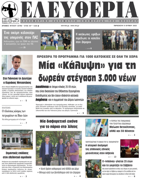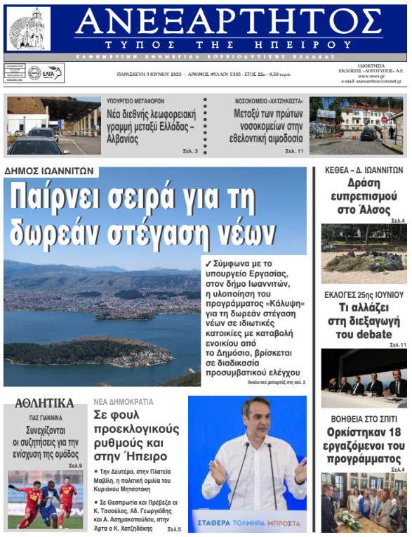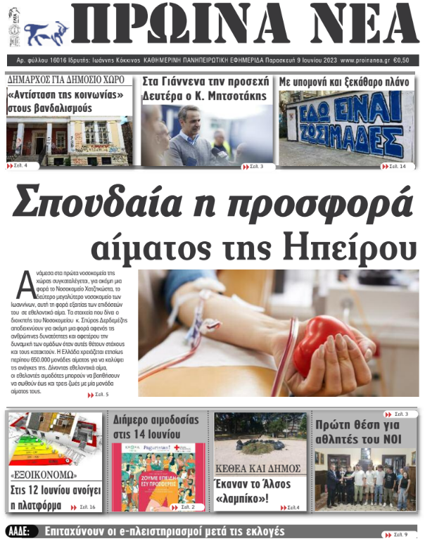 Διαβάστε στα πρωτοσέλιδα των γιαννιώτικων εφημερίδων της Παρασκευής 9 Ιουνίου