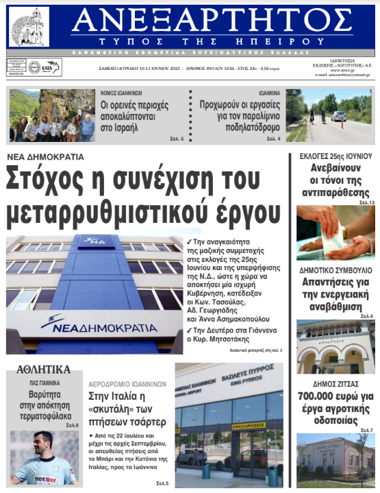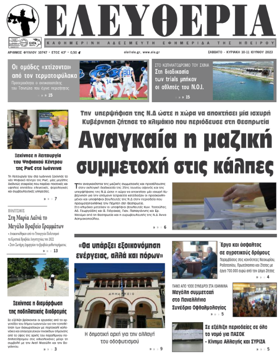 Διαβάστε στα πρωτοσέλιδα των γιαννιώτικων εφημερίδων 10-11 Ιουνίου