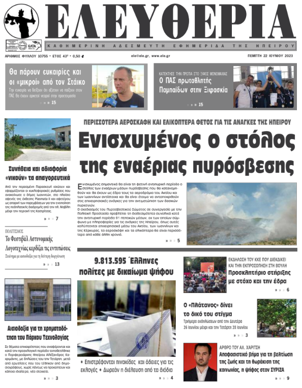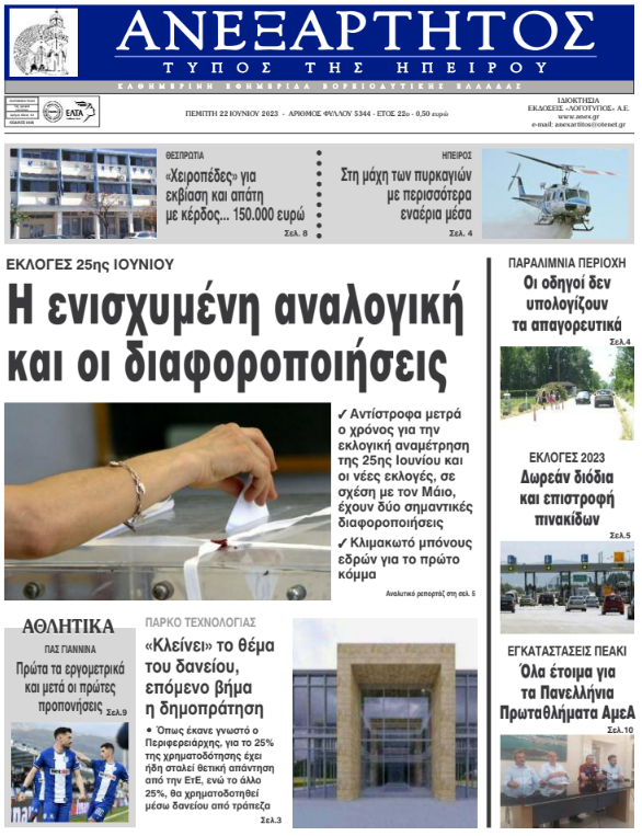Διαβάστε στα πρωτοσέλιδα των γιαννιώτικων εφημερίδων της Πέμπτης 22 Ιουνίου
