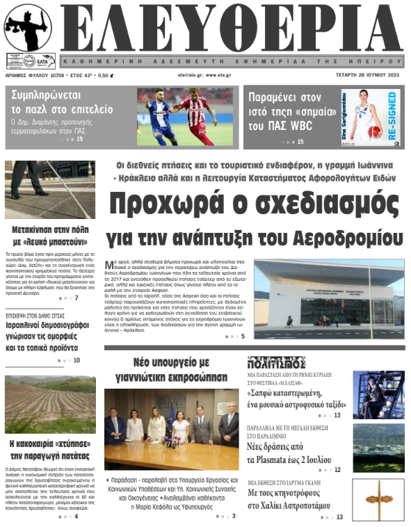 ΑρχικήΕΙΔΗΣΕΙΣΗΠΕΙΡΟΣ ΗΠΕΙΡΟΣ Τα πρωτοσέλιδα των γιαννιώτικων εφημερίδων 28.06.2023 815 FacebookTwitterWhatsAppEmailΤυπώνωViber Διαβάστε στα πρωτοσέλιδα των γιαννιώτικων εφημερίδων την Τετάρτη 28 Ιουνίου TagsΓΙΑΝΝΙΩΤΙΚΕΣ ΕΦΗΜΕΡΙΔΕΣΠΡΩΤΟΣΕΛΙΔΑ FacebookTwitterWhatsAppEmailΤυπώνωViber Προηγούμενο άρθροΠόλεμος στην Ουκρανία: Βομβαρδισμός εστιατορίου στο ΚραματόρσκΕπόμενο άρθροΜετακίνηση στην πόλη με «λευκό μπαστούνι» ΣΧΕΤΙΚΑ ΑΡΘΡΑ Τα πρωτοσέλιδα των γιαννιώτικων εφημερίδων TOP STORIES 10.12.2025 Τα πρωτοσέλιδα των γιαννιώτικων εφημερίδων ΗΠΕΙΡΟΣ 09.12.2025 Τα πρωτοσέλιδα των γιαννιώτικων εφημερίδων ΗΠΕΙΡΟΣ 06.12.2025 Τα πρωτοσέλιδα των γιαννιώτικων εφημερίδων ΗΠΕΙΡΟΣ 05.12.2025 Τα πρωτοσέλιδα των γιαννιώτικων εφημερίδων ΗΠΕΙΡΟΣ 04.12.2025 Τα πρωτοσέλιδα των γιαννιώτικων εφημερίδων ΗΠΕΙΡΟΣ 03.12.2025 ΣΤΗΝ ΙΔΙΑ ΚΑΤΗΓΟΡΙΑ ΑΡΤΑ -Ξεκίνησαν οι εργασίες κατασκευής του δικτύου φυσικού αερίου ΗΠΕΙΡΟΣ 10.12.2025 Κλειστός ο Δήμος Βορείων Τζουμέρκων στις 16 Δεκεμβρίου ΗΠΕΙΡΟΣ 10.12.2025 Ενημερωτικά σήματα ενάντια στη βία κατά των γυναικών ΗΠΕΙΡΟΣ 10.12.2025 Στήνεται το Χριστουγεννιάτικο δένδρο στην πλατεία – Το Σάββατο η φωταγώγηση ΗΠΕΙΡΟΣ 10.12.2025 Συνελήφθη διωκόμενος για ληστεία και φθορά ξένης ιδιοκτησίας ΗΠΕΙΡΟΣ 10.12.2025 Συντήρηση αθλητικών εγκαταστάσεων σε Λιμνοπούλα και Πανηπειρωτικό ΗΠΕΙΡΟΣ 10.12.2025 ΜΗ ΧΑΣΕΤΕ Στήνεται το Χριστουγεννιάτικο δένδρο στην πλατεία – Το Σάββατο η φωταγώγηση Εισαγγελική παρέμβαση για τις αγροτικές κινητοποιήσεις Μια νέα πρόταση για την ενοποίηση της πλατείας Ιωαννίνων Τα πρωτοσέλιδα των γιαννιώτικων εφημερίδων Εγκρίθηκε η χωροθέτηση των νέων «έξυπνων» υποδομών ΔΗΜΟΦΙΛΗ Ευρώπη: Σπέρμα δότη με καρκινογόνο γονίδιο χρησιμοποιήθηκε και στην Ελλάδα Κατέρρευσαν δύο κτίρια στο Μαρόκο – Τουλάχιστον 19 νεκροί 14χρονος εκβίαζε επί εβδομάδες 12χρονο – Του έκλεψε 8.000 ευρώ Στήνεται το Χριστουγεννιάτικο δένδρο στην πλατεία – Το Σάββατο η φωταγώγηση Κλειστός ο Δήμος Βορείων Τζουμέρκων στις 16 Δεκεμβρίου