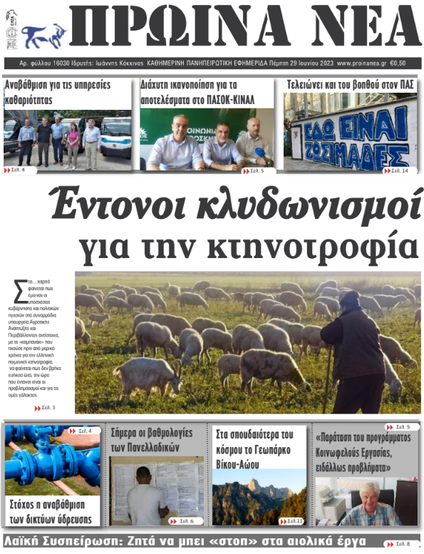 Διαβάστε στα πρωτοσέλιδα των γιαννιώτικων εφημερίδων της Πέμπτης 29 Ιουνίου