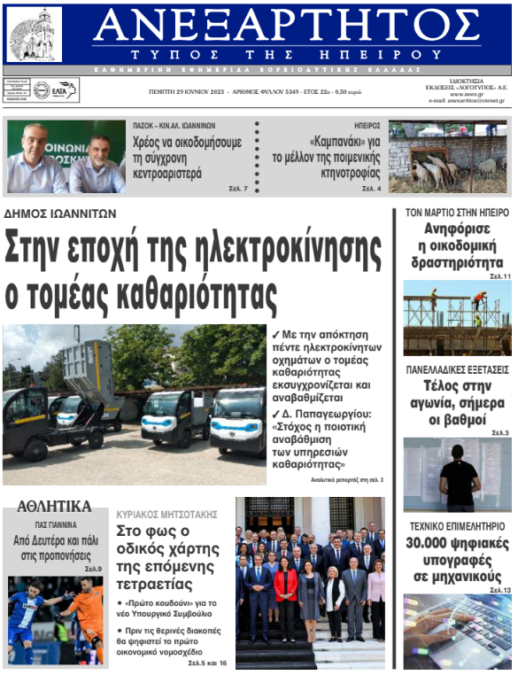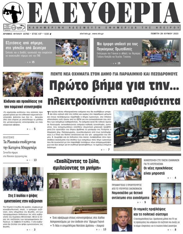 Διαβάστε στα πρωτοσέλιδα των γιαννιώτικων εφημερίδων της Πέμπτης 29 Ιουνίου