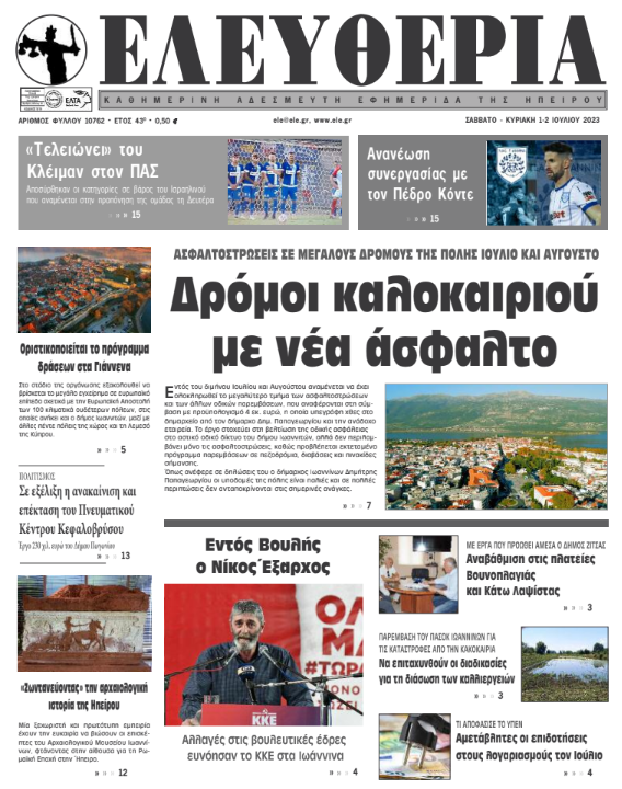 ΑρχικήΕΙΔΗΣΕΙΣΗΠΕΙΡΟΣ ΗΠΕΙΡΟΣ Τα πρωτοσέλιδα των γιαννιώτικων εφημερίδων 01.07.2023 751 FacebookTwitterWhatsAppEmailΤυπώνωViber Διαβάστε στα πρωτοσέλιδα των γιαννιώτικων εφημερίδων 1-2 Ιουλίου TagsΓΙΑΝΝΙΩΤΙΚΕΣ ΕΦΗΜΕΡΙΔΕΣΠΡΩΤΟΣΕΛΙΔΑ FacebookTwitterWhatsAppEmailΤυπώνωViber Προηγούμενο άρθροΚΛΙΜΑΤΙΚΑ ΟΥΔΕΤΕΡΕΣ ΠΟΛΕΙΣ -Έτοιμος μέχρι τον Σεπτέμβριο ο σχεδιασμός του δήμουΕπόμενο άρθροΕντός Βουλής ο Ν. Έξαρχος, εκτός ο Γ. Αμυράς ΣΧΕΤΙΚΑ ΑΡΘΡΑ Τα πρωτοσέλιδα των γιαννιώτικων εφημερίδων TOP STORIES 08.11.2025 Τα πρωτοσέλιδα των γιαννιώτικων εφημερίδων ΗΠΕΙΡΟΣ 07.11.2025 Τα πρωτοσέλιδα των γιαννιώτικων εφημερίδων ΗΠΕΙΡΟΣ 06.11.2025 Τα πρωτοσέλιδα των γιαννιώτικων εφημερίδων ΗΠΕΙΡΟΣ 05.11.2025 Τα πρωτοσέλιδα των γιαννιώτικων εφημερίδων ΗΠΕΙΡΟΣ 04.11.2025 Τα πρωτοσέλιδα των γιαννιώτικων εφημερίδων TOP STORIES 01.11.2025 ΣΤΗΝ ΙΔΙΑ ΚΑΤΗΓΟΡΙΑ Νταλίκα ντελαπάρισε στον νέο κόμβο στην παλιά Ε.Ο Ιωαννίνων–Ηγουμενίτσας ΗΠΕΙΡΟΣ 10.11.2025 Τροχαίο με έναν τραυματία στο Κλειστό Άρτας ΗΠΕΙΡΟΣ 10.11.2025 Παρέλαβε δέμα με ναρκωτικά από θυρίδα ταχυμεταφορών ΗΠΕΙΡΟΣ 10.11.2025 Κοινό των Ηπειρωτών: Ανάγκη για πλήρη διαφάνεια στις παρεμβάσεις στον Γράμμο ΗΠΕΙΡΟΣ 10.11.2025 Μεγάλα προβλήματα από την κακοκαιρία σε Φιλιππιάδα, Πρέβεζα και Βόνιτσα ΗΠΕΙΡΟΣ 10.11.2025 Σύλληψη σε κατάστημα στα Ιωάννινα για διάθεση αλκοόλ σε ανηλίκους ΗΠΕΙΡΟΣ 10.11.2025 ΜΗ ΧΑΣΕΤΕ Νταλίκα ντελαπάρισε στον νέο κόμβο στην παλιά Ε.Ο Ιωαννίνων–Ηγουμενίτσας Τον Ιούνιο θα εγκατασταθούν οι 1.000 κάμερες στους δρόμους -Βodycam και σε αστυνομικούς Συντάξεις Δεκεμβρίου: Πότε θα καταβληθούν Ο «χάρτης» των πληρωμών από τον e-ΕΦΚΑ και τη ΔΥΠΑ έως την Παρασκευή 14 Νοεμβρίου Η Ελλάδα πρώτη στην ΕΕ σε πολίτες χωρίς αναγκαία ιατρική περίθαλψη ΔΗΜΟΦΙΛΗ
