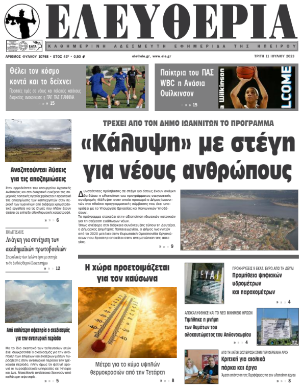 ΑρχικήΕΙΔΗΣΕΙΣΗΠΕΙΡΟΣ ΗΠΕΙΡΟΣ Τα πρωτοσέλιδα των γιαννιώτικων εφημερίδων 11.07.2023 682 FacebookTwitterWhatsAppEmailΤυπώνωViber Διαβάστε στα πρωτοσέλιδα των γιαννιώτικων εφημερίδων της Τρίτης 11 Ιουλίου TagsΓΙΑΝΝΙΩΤΙΚΕΣ ΕΦΗΜΕΡΙΔΕΣΠΡΩΤΟΣΕΛΙΔΑ FacebookTwitterWhatsAppEmailΤυπώνωViber Προηγούμενο άρθροΣυγχαρητήρια του Π.Ν.Ο.Ι. στον Στέφανο ΝτούσκοΕπόμενο άρθροΑναζητούνται λύσεις για τις αποζημιώσεις ΣΧΕΤΙΚΑ ΑΡΘΡΑ Τα πρωτοσέλιδα των γιαννιώτικων εφημερίδων TOP STORIES 27.11.2025 Τα πρωτοσέλιδα των γιαννιώτικων εφημερίδων ΗΠΕΙΡΟΣ 26.11.2025 Τα πρωτοσέλιδα των γιαννιώτικων εφημερίδων ΗΠΕΙΡΟΣ 25.11.2025 Τα πρωτοσέλιδα των γιαννιώτικων εφημερίδων ΗΠΕΙΡΟΣ 22.11.2025 Τα πρωτοσέλιδα των γιαννιώτικων εφημερίδων ΗΠΕΙΡΟΣ 21.11.2025 Τα πρωτοσέλιδα των γιαννιώτικων εφημερίδων TOP STORIES 20.11.2025 ΣΤΗΝ ΙΔΙΑ ΚΑΤΗΓΟΡΙΑ Στο Μέτσοβο η Ολυμπιακή Φλόγα την Παρασκευή ΗΠΕΙΡΟΣ 27.11.2025 Σύλληψη για ηχορύπανση από κατάστημα διασκέδασης ΗΠΕΙΡΟΣ 27.11.2025 Δικογραφία για απάτη 3.000 ευρώ στην Άρτα ΗΠΕΙΡΟΣ 27.11.2025 Αιτήσεις για αποζημίωση πλημμυροπαθών στον Δήμο Ζηρού – Τα δικαιολογητικά ΗΠΕΙΡΟΣ 27.11.2025 Κατολίσθηση στην Άγναντα – Ανήσυχοι οι κάτοικοι ΗΠΕΙΡΟΣ 27.11.2025 Σε ετοιμότητα Περιφέρεια και δήμοι για το νέο κύμα κακοκαιρίας ΗΠΕΙΡΟΣ 27.11.2025 ΜΗ ΧΑΣΕΤΕ Μητσοτάκης: Από Παρασκευή η επιστροφή ενοικίου για 1 εκατ. πολίτες Πότε θα καταβληθούν οι συντάξεις Ιανουαρίου Κατολίσθηση στην Άγναντα – Ανήσυχοι οι κάτοικοι Σε ετοιμότητα Περιφέρεια και δήμοι για το νέο κύμα κακοκαιρίας Κατηγορίες κατά του Δήμου για αδιαφορία μετά την πτώση δέντρου ΔΗΜΟΦΙΛΗ Έρχεται νέο μάθημα σε Δημοτικό, Γυμνάσιο και Λύκειο Σύλληψη για ηχορύπανση από κατάστημα διασκέδασης Χείμαρροι και ρέματα υπερχείλισαν στην Αμφιλοχία Υπουργείο Εργασίας: 12 ερωτήσεις και απαντήσεις για την κοινωνική συμφωνία Αιτήσεις για αποζημίωση πλημμυροπαθών στον Δήμο Ζηρού – Τα δικαιολογητικά