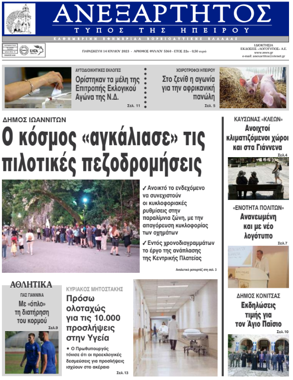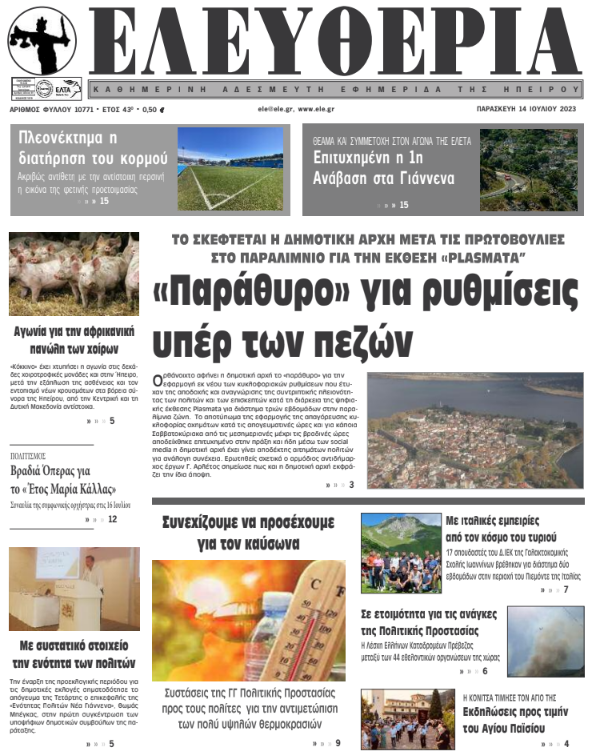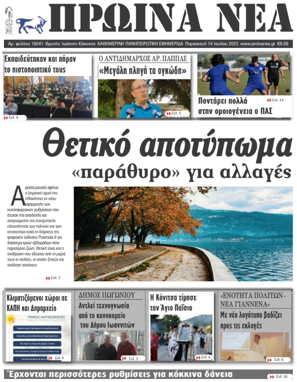 Διαβάστε στα πρωτοσέλιδα των γιαννιώτικων εφημερίδων της Παρασκευής 14 Ιουλίου