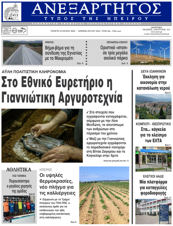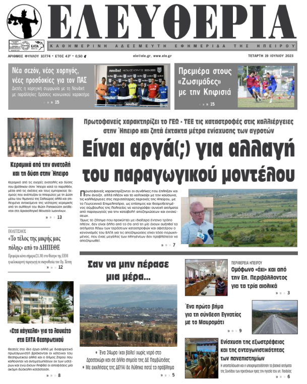 ΑρχικήΕΙΔΗΣΕΙΣΗΠΕΙΡΟΣ ΗΠΕΙΡΟΣ Τα πρωτοσέλιδα των γιαννιώτικων εφημερίδων 19.07.2023 853 FacebookTwitterWhatsAppEmailΤυπώνωViber Διαβάστε στα πρωτοσέλιδα των γιαννιώτικων εφημερίδων της Τετάρτης 19 Ιουλίου TagsΓΙΑΝΝΙΩΤΙΚΕΣ ΕΦΗΜΕΡΙΔΕΣΠΡΩΤΟΣΕΛΙΔΑ FacebookTwitterWhatsAppEmailΤυπώνωViber Προηγούμενο άρθροΤραυματισμός 13χρονης που παρασύρθηκε από σκάφος στην ΠάργαΕπόμενο άρθροΟμόφωνο «όχι» και από την Επ. Περιβάλλοντος για τα τρία αιολικά ΣΧΕΤΙΚΑ ΑΡΘΡΑ Τα πρωτοσέλιδα των γιαννιώτικων εφημερίδων TOP STORIES 24.12.2025 Τα πρωτοσέλιδα των γιαννιώτικων εφημερίδων ΗΠΕΙΡΟΣ 23.12.2025 Τα πρωτοσέλιδα των γιαννιώτικων εφημερίδων ΗΠΕΙΡΟΣ 19.12.2025 Τα πρωτοσέλιδα των γιαννιώτικων εφημερίδων ΗΠΕΙΡΟΣ 18.12.2025 Τα πρωτοσέλιδα των γιαννιώτικων εφημερίδων ΗΠΕΙΡΟΣ 17.12.2025 Τα πρωτοσέλιδα των γιαννιώτικων εφημερίδων ΗΠΕΙΡΟΣ 16.12.2025 ΣΤΗΝ ΙΔΙΑ ΚΑΤΗΓΟΡΙΑ Έντονες αντιδράσεις στα κεντρικά προκαλεί το πρωτοσέλιδο των «Πρωινών Νέων» ΗΠΕΙΡΟΣ 24.12.2025 Επιτυχημένη παρουσίαση των αποτελεσμάτων του προγράμματος GINGER για την πρόληψη της άνοιας ΗΠΕΙΡΟΣ 24.12.2025 Ηλεκτρονική βεβαίωση παραβάσεων από τη Δημοτική Αστυνομία Ιωαννίνων ΗΠΕΙΡΟΣ 24.12.2025 Χριστουγεννιάτικες μελωδίες και ευχές στο Δημαρχείο Ιωαννίνων ΗΠΕΙΡΟΣ 24.12.2025 Ιωάννινα: Συνελήφθη ιδιοκτήτης καταστήματος για διάθεση αλκοόλ σε ανηλίκους ΗΠΕΙΡΟΣ 24.12.2025 Τα πρωτοσέλιδα των γιαννιώτικων εφημερίδων TOP STORIES 24.12.2025 ΜΗ ΧΑΣΕΤΕ Έντονες αντιδράσεις στα κεντρικά προκαλεί το πρωτοσέλιδο των «Πρωινών Νέων» Λήγει στις 31 Δεκεμβρίου η προθεσμία για τα τέλη κυκλοφορίας 2026 Χριστουγεννιάτικη έξοδος με αυξημένη κίνηση και αγροτικά μπλόκα Ανοιχτά τα καταστήματα την παραμονή Χριστουγέννων Κακοκαιρία τα Χριστούγεννα – Ισχυρά φαινόμενα σε πολλές περιοχές ΔΗΜΟΦΙΛΗ Γεραπετρίτης: Ανοικτοί δίαυλοι με την Τουρκία για αποτροπή εντάσεων Τρεις Έλληνες στη δεκάδα του «Αθλητή των Βαλκανίων 2025» Φάμελλος: «Το φετινό χριστουγεννιάτικο τραπέζι είναι έως 30% ακριβότερο από πέρσι» Ιωάννινα: Συνελήφθη ιδιοκτήτης καταστήματος για διάθεση αλκοόλ σε ανηλίκους Χριστουγεννιάτικες μελωδίες και ευχές στο Δημαρχείο Ιωαννίνων