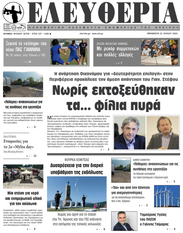 ΑρχικήΕΙΔΗΣΕΙΣΗΠΕΙΡΟΣ ΗΠΕΙΡΟΣ Τα πρωτοσέλιδα των γιαννιώτικων εφημερίδων 21.07.2023 956 FacebookTwitterWhatsAppEmailΤυπώνωViber Διαβάστε στα πρωτοσέλιδα των γιαννιώτικων εφημερίδων της Παρασκευής 21 Ιουλίου TagsΓΙΑΝΝΙΩΤΙΚΕΣ ΕΦΗΜΕΡΙΔΕΣΠΡΩΤΟΣΕΛΙΔΑ FacebookTwitterWhatsAppEmailΤυπώνωViber Προηγούμενο άρθροΜητσοτάκης : Ξανά στο συντονιστικό της ΠυροσβεστικήςΕπόμενο άρθρο«Χρώματα και αρώματα …τραγουδιών που αγαπήσαμε» ΣΧΕΤΙΚΑ ΑΡΘΡΑ Τα πρωτοσέλιδα των γιαννιώτικων εφημερίδων TOP STORIES 15.11.2025 Τα πρωτοσέλιδα των γιαννιώτικων εφημερίδων ΗΠΕΙΡΟΣ 14.11.2025 Τα πρωτοσέλιδα των γιαννιώτικων εφημερίδων ΗΠΕΙΡΟΣ 13.11.2025 Τα πρωτοσέλιδα των γιαννιώτικων εφημερίδων ΗΠΕΙΡΟΣ 12.11.2025 Τα πρωτοσέλιδα των γιαννιώτικων εφημερίδων ΗΠΕΙΡΟΣ 11.11.2025 Τα πρωτοσέλιδα των γιαννιώτικων εφημερίδων TOP STORIES 08.11.2025 ΣΤΗΝ ΙΔΙΑ ΚΑΤΗΓΟΡΙΑ Ένας ζωντανός καθρέφτης της παράδοσης με βλέμμα στο μέλλον ΗΠΕΙΡΟΣ 15.11.2025 Μαθηματική έρευνα και κριτική σκέψη στην εποχή της Τεχνητής Νοημοσύνης ΗΠΕΙΡΟΣ 15.11.2025 Τα πρωτοσέλιδα των γιαννιώτικων εφημερίδων TOP STORIES 15.11.2025 ΑΠΟ ΤΗΝ ΠΕΡΙΦΕΡΕΙΑ -Συστάσεις λόγω υψηλών συγκεντρώσεων αιωρούμενων σωματιδίων ΗΠΕΙΡΟΣ 15.11.2025 Εκλογή του Παναγιώτη Σουκάκου στην Ακαδημία Αθηνών ΗΠΕΙΡΟΣ 14.11.2025 Εντυπωσιακό το αποτέλεσμα της αναστήλωσης στο τζαμί Καλούτσανης ΗΠΕΙΡΟΣ 14.11.2025 ΜΗ ΧΑΣΕΤΕ Ένας ζωντανός καθρέφτης της παράδοσης με βλέμμα στο μέλλον Μαθηματική έρευνα και κριτική σκέψη στην εποχή της Τεχνητής Νοημοσύνης Τα πρωτοσέλιδα των γιαννιώτικων εφημερίδων Εντυπωσιακό το αποτέλεσμα της αναστήλωσης στο τζαμί Καλούτσανης Ενιαίο αστικό πάρκο στις παλιές στρατιωτικές φυλακές ΔΗΜΟΦΙΛΗ Ανακαλούνται οι δασμοί Τραμπ σε καφέ, κακάο και δεκάδες άλλα τρόφιμα Νίκη πάση θυσία για τον ΠΑΣ Πάνω από 50 αγελάδες πέθαναν σε πλοίο που τις μετέφερε στην Τουρκία Μαθηματική έρευνα και κριτική σκέψη στην εποχή της Τεχνητής Νοημοσύνης Ένας ζωντανός καθρέφτης της παράδοσης με βλέμμα στο μέλλον