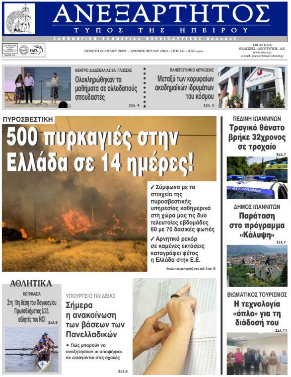 Διαβάστε στα πρωτοσέλιδα των γιαννιώτικων εφημερίδων της Πέμπτης 27 Ιουλίου