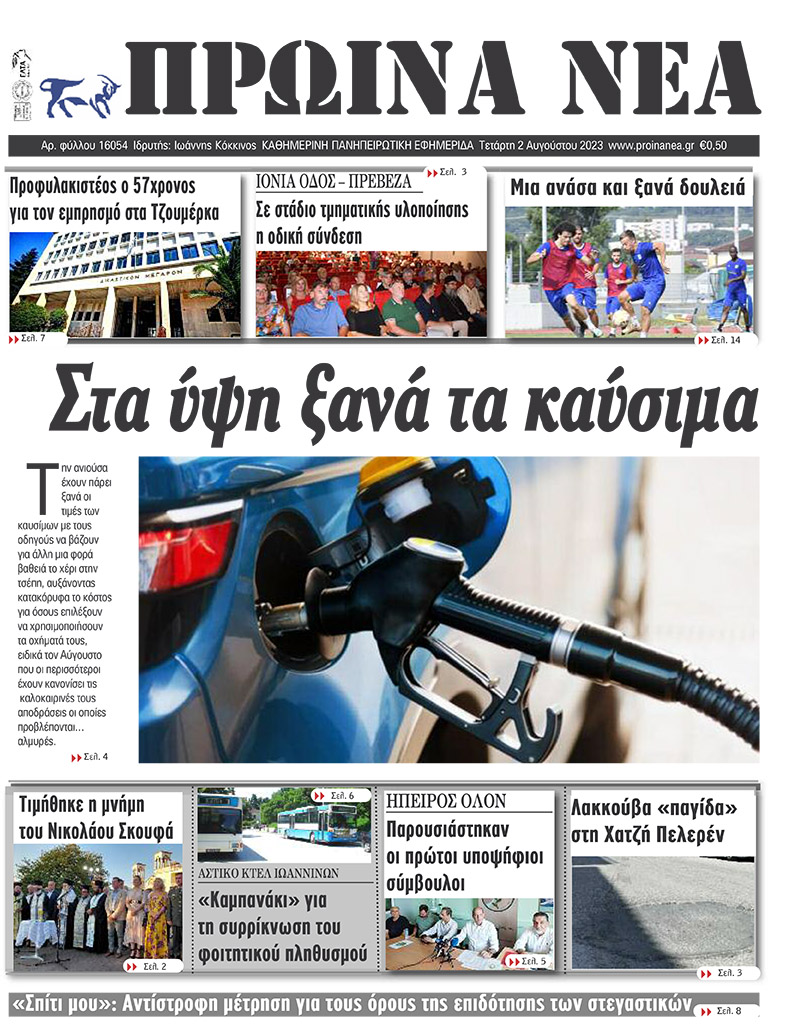 Διαβάστε στα πρωτοσέλιδα των γιαννιώτικων εφημερίδων της Τετάρτης 2 Αυγούστου