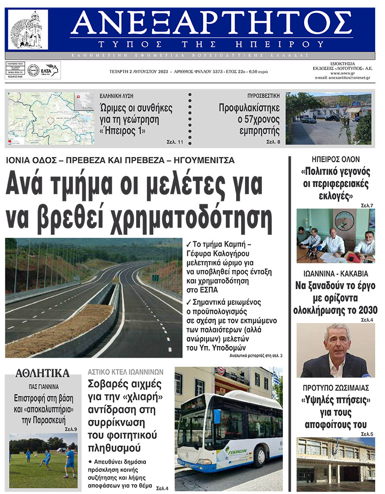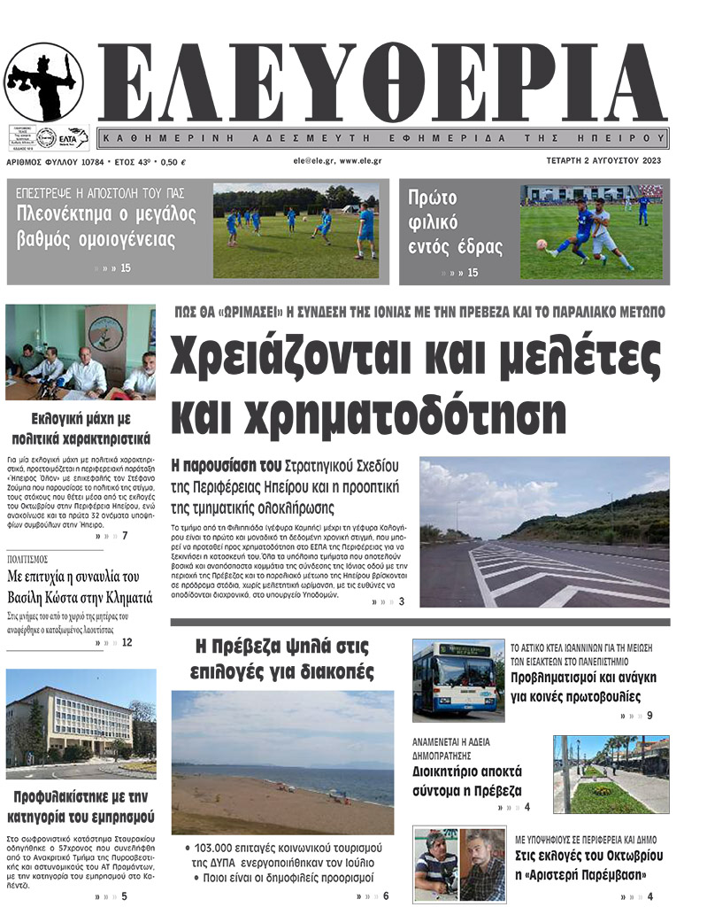 Διαβάστε στα πρωτοσέλιδα των γιαννιώτικων εφημερίδων της Τετάρτης 2 Αυγούστου