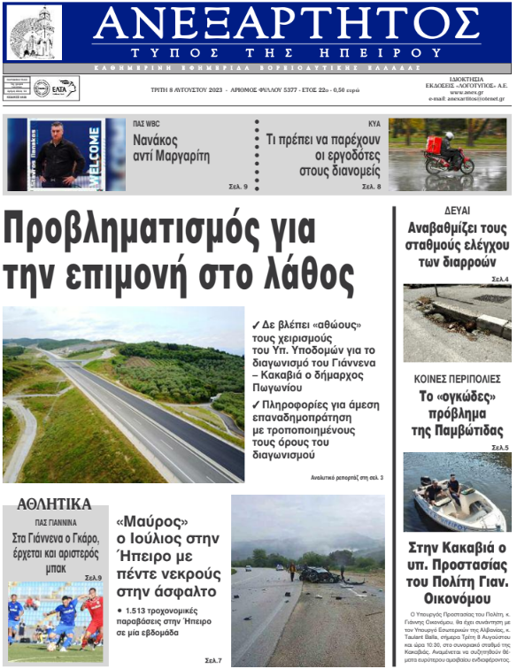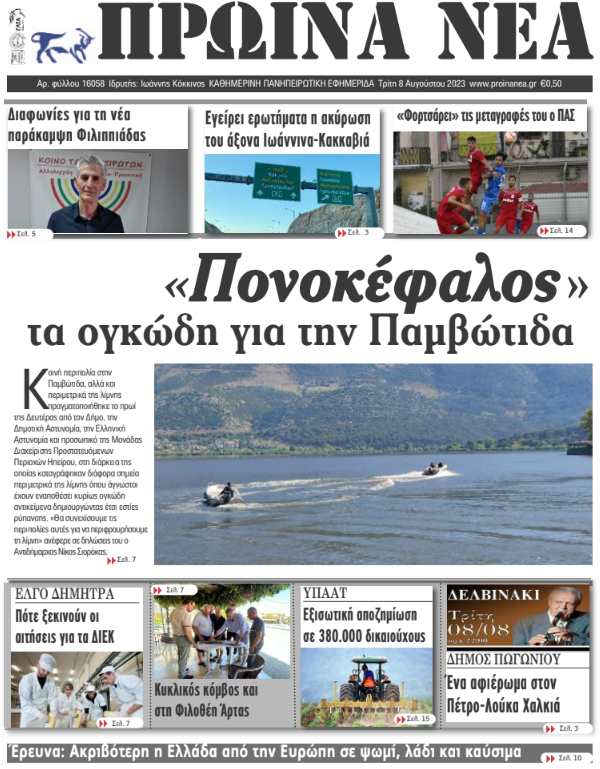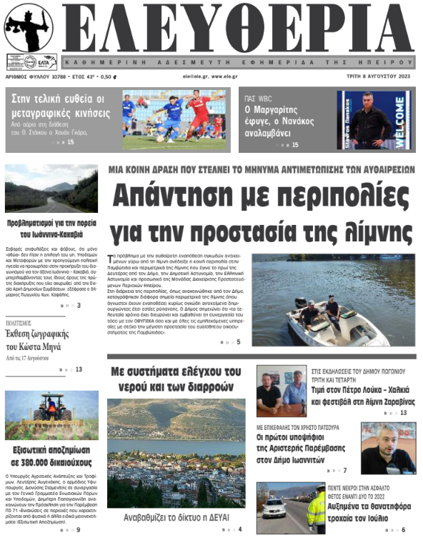 ΑρχικήΕΙΔΗΣΕΙΣΗΠΕΙΡΟΣ ΗΠΕΙΡΟΣ Τα πρωτοσέλιδα των γιαννιώτικων εφημερίδων 08.08.2023 103 FacebookTwitterWhatsAppEmailΤυπώνωViber Διαβάστε στα πρωτοσέλιδα των γιαννιώτικων εφημερίδων της Τρίτης 8 Αυγούστου TagsΓΙΑΝΝΙΩΤΙΚΕΣ ΕΦΗΜΕΡΙΔΕΣΠΡΩΤΟΣΕΛΙΔΑ FacebookTwitterWhatsAppEmailΤυπώνωViber Προηγούμενο άρθροΑναβλήθηκε η συνάντηση Γ. Οικονόμου με τον ΥΠΕΣ της ΑλβανίαςΕπόμενο άρθροΜε συστήματα ελέγχου του νερού και των διαρροών ΣΧΕΤΙΚΑ ΑΡΘΡΑ Τα πρωτοσέλιδα των γιαννιώτικων εφημερίδων TOP STORIES 11.11.2025 Τα πρωτοσέλιδα των γιαννιώτικων εφημερίδων TOP STORIES 08.11.2025 Τα πρωτοσέλιδα των γιαννιώτικων εφημερίδων ΗΠΕΙΡΟΣ 07.11.2025 Τα πρωτοσέλιδα των γιαννιώτικων εφημερίδων ΗΠΕΙΡΟΣ 06.11.2025 Τα πρωτοσέλιδα των γιαννιώτικων εφημερίδων ΗΠΕΙΡΟΣ 05.11.2025 Τα πρωτοσέλιδα των γιαννιώτικων εφημερίδων ΗΠΕΙΡΟΣ 04.11.2025 ΣΤΗΝ ΙΔΙΑ ΚΑΤΗΓΟΡΙΑ Επί τάπητος υποδομές, περιβάλλον και ΤΠΣ ΗΠΕΙΡΟΣ 11.11.2025 Σε αυξημένη ετοιμότητα η Ήπειρος για τη γρίπη των πτηνών ΗΠΕΙΡΟΣ 11.11.2025 Πρωτιά για τον Δήμο Βορείων Τζουμέρκων στη διαχείριση υδάτων ΗΠΕΙΡΟΣ 11.11.2025 Δωρεά ζωής από ασθενή στο ΠΓΝΙ TOP STORIES 11.11.2025 Νέες αντιδράσεις για τις παρεμβάσεις στο Γράμμο ΗΠΕΙΡΟΣ 11.11.2025 Πίεση για τα 5 εκατ. ευρώ του πρώην Κλειστού Ξιφασκίας ΗΠΕΙΡΟΣ 11.11.2025 ΜΗ ΧΑΣΕΤΕ Επίδομα θέρμανσης: Νέες οδηγίες της ΑΑΔΕ Σε αυξημένη ετοιμότητα η Ήπειρος για τη γρίπη των πτηνών Δωρεά ζωής από ασθενή στο ΠΓΝΙ Νέες αντιδράσεις για τις παρεμβάσεις στο Γράμμο Πίεση για τα 5 εκατ. ευρώ του πρώην Κλειστού Ξιφασκίας ΔΗΜΟΦΙΛΗ Αριθμός ρεκόρ Ουκρανών έλαβαν προσωρινή προστασία στην ΕΕ από το 2023 Επί τάπητος υποδομές, περιβάλλον και ΤΠΣ Εορτασμός Ημέρας Ενόπλων Δυνάμεων στο Μολυβδοσκέπαστο Δωρεά ζωής από ασθενή στο ΠΓΝΙ Πρωτιά για τον Δήμο Βορείων Τζουμέρκων στη διαχείριση υδάτων