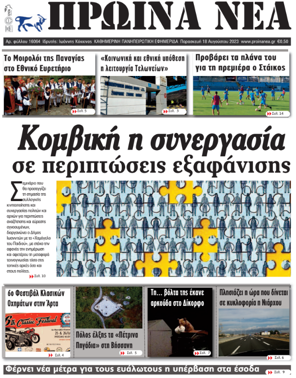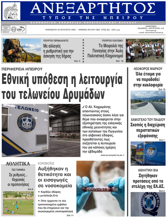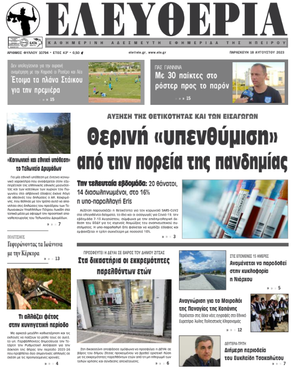 ΑρχικήΕΙΔΗΣΕΙΣΗΠΕΙΡΟΣ ΗΠΕΙΡΟΣ Τα πρωτοσέλιδα των γιαννιώτικων εφημερίδων 18.08.2023 429 FacebookTwitterWhatsAppEmailΤυπώνωViber Διαβάστε στα πρωτοσέλιδα των γιαννιώτικων εφημερίδων της Παρασκευής 18 Αυγούστου TagsΓΙΑΝΝΙΩΤΙΚΕΣ ΕΦΗΜΕΡΙΔΕΣΠΡΩΤΟΣΕΛΙΔΑ FacebookTwitterWhatsAppEmailΤυπώνωViber Προηγούμενο άρθροΦωτιά σε δασική έκταση στο Άγιο ΌροςΕπόμενο άρθροΤι αλλάζει φέτος στην κυνηγετική περίοδο ΣΧΕΤΙΚΑ ΑΡΘΡΑ Τα πρωτοσέλιδα των γιαννιώτικων εφημερίδων TOP STORIES 11.11.2025 Τα πρωτοσέλιδα των γιαννιώτικων εφημερίδων TOP STORIES 08.11.2025 Τα πρωτοσέλιδα των γιαννιώτικων εφημερίδων ΗΠΕΙΡΟΣ 07.11.2025 Τα πρωτοσέλιδα των γιαννιώτικων εφημερίδων ΗΠΕΙΡΟΣ 06.11.2025 Τα πρωτοσέλιδα των γιαννιώτικων εφημερίδων ΗΠΕΙΡΟΣ 05.11.2025 Τα πρωτοσέλιδα των γιαννιώτικων εφημερίδων ΗΠΕΙΡΟΣ 04.11.2025 ΣΤΗΝ ΙΔΙΑ ΚΑΤΗΓΟΡΙΑ Ενημερωτική δράση για τον σακχαρώδη διαβήτη στα Ιωάννινα ΗΠΕΙΡΟΣ 11.11.2025 Συνελήφθη αλλοδαπός διωκόμενος στην Κακαβιά ΗΠΕΙΡΟΣ 11.11.2025 Κατασχέθηκαν 45 αρνιά στην Πρέβεζα – Δύο συλλήψεις ΗΠΕΙΡΟΣ 11.11.2025 43χρονος βρέθηκε νεκρός εντός Ι.Χ. στο Τέροβο ΗΠΕΙΡΟΣ 11.11.2025 Επί τάπητος υποδομές, περιβάλλον και ΤΠΣ ΗΠΕΙΡΟΣ 11.11.2025 Σε αυξημένη ετοιμότητα η Ήπειρος για τη γρίπη των πτηνών ΗΠΕΙΡΟΣ 11.11.2025 ΜΗ ΧΑΣΕΤΕ 43χρονος βρέθηκε νεκρός εντός Ι.Χ. στο Τέροβο Επίδομα θέρμανσης: Νέες οδηγίες της ΑΑΔΕ Σε αυξημένη ετοιμότητα η Ήπειρος για τη γρίπη των πτηνών Δωρεά ζωής από ασθενή στο ΠΓΝΙ Νέες αντιδράσεις για τις παρεμβάσεις στο Γράμμο ΔΗΜΟΦΙΛΗ Η ΔΟΕ ετοιμάζει απαγόρευση για τις τρανς αθλήτριες πριν από τους Ολυμπιακούς του Λος Άντζελες Ήττα στις λεπτομέρεις για τον ΠΑΣ WBC στις Σέρρες Σε αυξημένη ετοιμότητα η Ήπειρος για τη γρίπη των πτηνών Τα του Καίσαρος… Πίεση για τα 5 εκατ. ευρώ του πρώην Κλειστού Ξιφασκίας