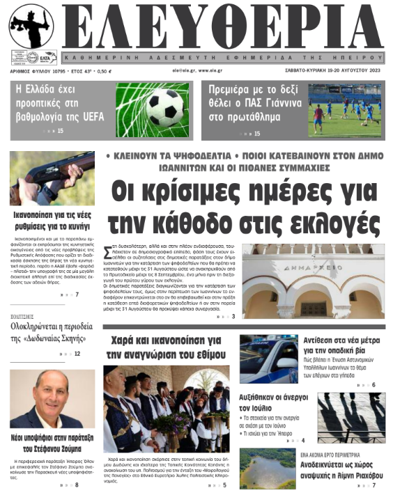 Διαβάστε στα πρωτοσέλιδα των γιαννιώτικων εφημερίδων 19-20 Αυγούστου