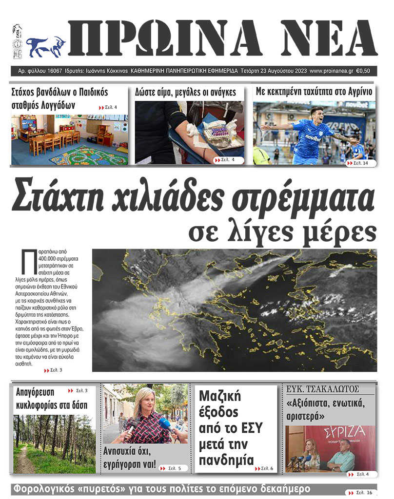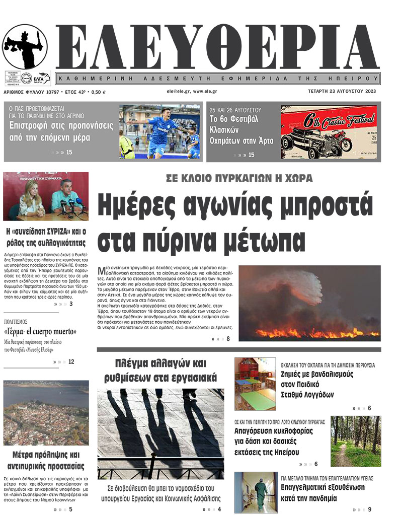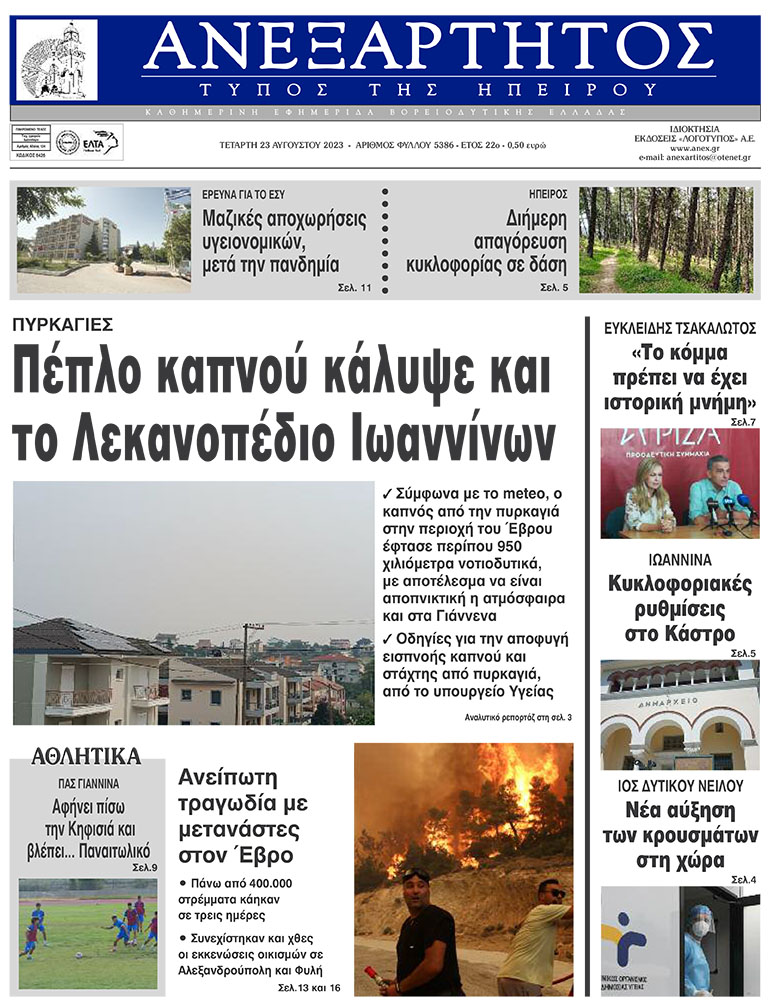 Διαβάστε στα πρωτοσέλιδα των γιαννιώτικων εφημερίδων της Τετάρτης 23 Αυγούστου