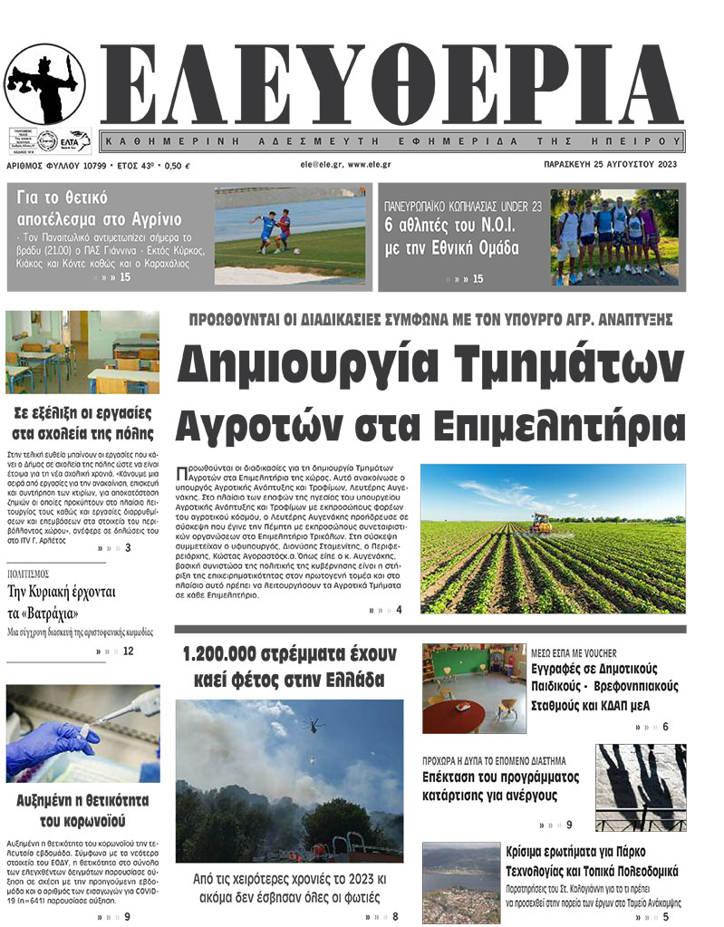 ΑρχικήTOP STORIES TOP STORIESΗΠΕΙΡΟΣ Τα πρωτοσέλιδα των γιαννιώτικων εφημερίδων 25.08.2023 344 FacebookTwitterWhatsAppEmailΤυπώνωViber Διαβάστε στα πρωτοσέλιδα των γιαννιώτικων εφημερίδων της Παρασκευής 25 Αυγούστου TagsΓΙΑΝΝΙΩΤΙΚΕΣ ΕΦΗΜΕΡΙΔΕΣΠΡΩΤΟΣΕΛΙΔΑ FacebookTwitterWhatsAppEmailΤυπώνωViber Προηγούμενο άρθροΜίλτος Τεντόγλου –Πήρε το χρυσό μετάλλιο και στο Παγκόσμιο πρωτάθλημα με 8,52 μ.Επόμενο άρθροΔημιουργία Τμημάτων Αγροτών στα Επιμελητήρια ΣΧΕΤΙΚΑ ΑΡΘΡΑ Τα πρωτοσέλιδα των γιαννιώτικων εφημερίδων ΗΠΕΙΡΟΣ 25.11.2025 Τα πρωτοσέλιδα των γιαννιώτικων εφημερίδων ΗΠΕΙΡΟΣ 22.11.2025 Τα πρωτοσέλιδα των γιαννιώτικων εφημερίδων ΗΠΕΙΡΟΣ 21.11.2025 Τα πρωτοσέλιδα των γιαννιώτικων εφημερίδων TOP STORIES 20.11.2025 Τα πρωτοσέλιδα των γιαννιώτικων εφημερίδων ΗΠΕΙΡΟΣ 19.11.2025 Τα πρωτοσέλιδα των γιαννιώτικων εφημερίδων ΗΠΕΙΡΟΣ 18.11.2025 ΣΤΗΝ ΙΔΙΑ ΚΑΤΗΓΟΡΙΑ Προ των πυλών δύο ισχυρά κύματα κακοκαιρίας – Αύριο το πρώτο «χτύπημα» TOP STORIES 25.11.2025 Εκδηλώσεις για τον ποιητή και ήρωα Λορέντζο Μαβίλη ΗΠΕΙΡΟΣ 25.11.2025 Στα Γιάννενα το 20ο Ετήσιο Συνέδριο του Δικτύου Υγιών Πόλεων ΗΠΕΙΡΟΣ 25.11.2025 Άνοδος 25 εκατοστών της στάθμης της λίμνης σε 15 ημέρες! ΗΠΕΙΡΟΣ 25.11.2025 Μαθήτρια του 3ου ΓΕΛ Ιωαννίνων πρώτη σε διαγωνισμό λογότυπου για την Επιτροπή Ισότητας ΗΠΕΙΡΟΣ 25.11.2025 Λύση μετά από δεκαετίες για Δροσιά, Πεντέλη, Ζευγάρια και Τσιφλικόπουλο ΗΠΕΙΡΟΣ 25.11.2025 ΜΗ ΧΑΣΕΤΕ Προ των πυλών δύο ισχυρά κύματα κακοκαιρίας – Αύριο το πρώτο «χτύπημα» Άνοδος 25 εκατοστών της στάθμης της λίμνης σε 15 ημέρες! Λύση μετά από δεκαετίες για Δροσιά, Πεντέλη, Ζευγάρια και Τσιφλικόπουλο Καταδίωξη–θρίλερ στην Εγνατία: 32 κιλά κάνναβης και κοκαΐνη σε μοτοσικλέτα δραπέτη Επίδομα θέρμανσης: Λάθη στις αιτήσεις που μπορεί να «κοστίσουν» ΔΗΜΟΦΙΛΗ ΟΗΕ: Μια γυναίκα δολοφονείται από σύντροφο ή συγγενή της κάθε 10 λεπτά Η εορτή της Αγ. Αικατερίνης στο Σιναϊτικό Μετόχι των Ιωαννίνων Στο Άμπου Ντάμπι το νέο πεδίο μυστικών επαφών για τον πόλεμο στην Ουκρανία Άνοδος 25 εκατοστών της στάθμης της λίμνης σε 15 ημέρες! Επίδομα θέρμανσης: Λάθη στις αιτήσεις που μπορεί να «κοστίσουν»