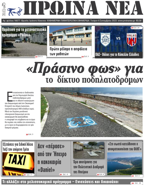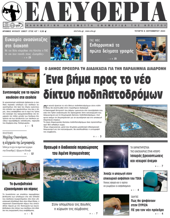 Διαβάστε στα πρωτοσέλιδα των γιαννιώτικων εφημερίδων της Τετάρτης 6 Σεπτεμβρίου
