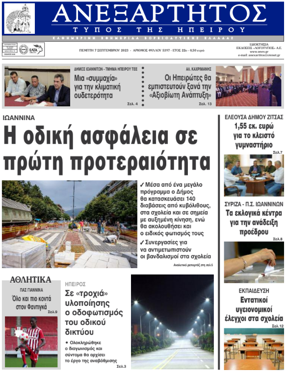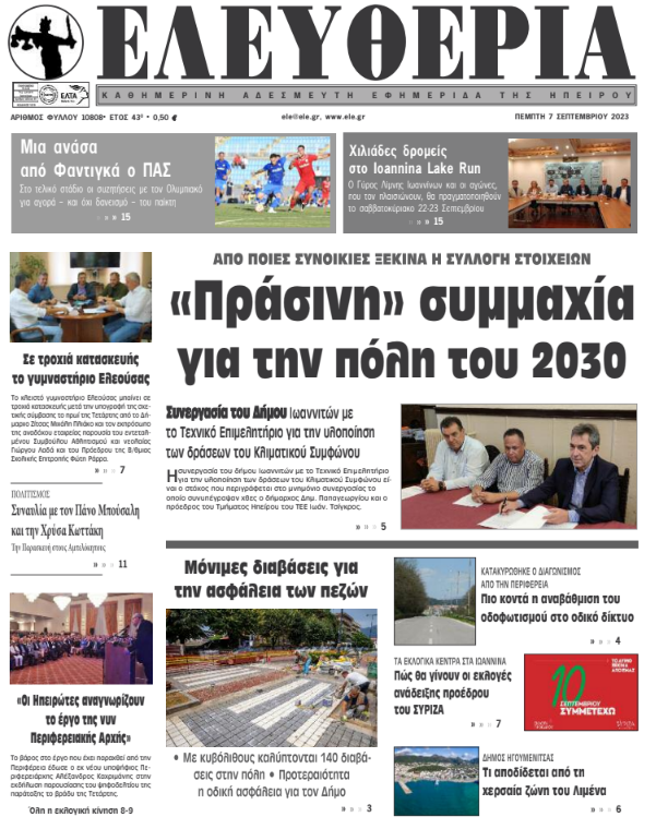 ΑρχικήΕΙΔΗΣΕΙΣΗΠΕΙΡΟΣ ΗΠΕΙΡΟΣ Τα πρωτοσέλιδα των γιαννιώτικων εφημερίδων 07.09.2023 164 FacebookTwitterWhatsAppEmailΤυπώνωViber Διαβάστε στα πρωτοσέλιδα των γιαννιώτικων εφημερίδων της Πέμπτης 7 Σεπτεμβρίου TagsΓΙΑΝΝΙΩΤΙΚΕΣ ΕΦΗΜΕΡΙΔΕΣΠΡΩΤΟΣΕΛΙΔΑ FacebookTwitterWhatsAppEmailΤυπώνωViber Προηγούμενο άρθροΠοινική δίωξη σε βάρος των 4 συλληφθέντων του Blue Horizon για τον θάνατο του 36χρονου ΑντώνηΕπόμενο άρθροΧιλιάδες δρομείς στο Ioannina Lake Run ΣΧΕΤΙΚΑ ΑΡΘΡΑ Τα πρωτοσέλιδα των γιαννιώτικων εφημερίδων TOP STORIES 13.01.2026 Τα πρωτοσέλιδα των γιαννιώτικων εφημερίδων ΗΠΕΙΡΟΣ 11.01.2026 Τα πρωτοσέλιδα των γιαννιώτικων εφημερίδων ΗΠΕΙΡΟΣ 09.01.2026 Τα πρωτοσέλιδα των γιαννιώτικων εφημερίδων ΗΠΕΙΡΟΣ 08.01.2026 Τα πρωτοσέλιδα των γιαννιώτικων εφημερίδων ΗΠΕΙΡΟΣ 06.01.2026 Τα πρωτοσέλιδα των γιαννιώτικων εφημερίδων ΗΠΕΙΡΟΣ 01.01.2026 ΣΤΗΝ ΙΔΙΑ ΚΑΤΗΓΟΡΙΑ ΕΞΑΙΤΙΑΣ ΤΩΝ ΧΑΜΗΛΩΝ ΘΕΡΜΟΚΡΑΣΙΩΝ -Νωρίτερα η βραδινή αποκομιδή ΗΠΕΙΡΟΣ 13.01.2026 Με λαμπρότητα εορτάστηκε η μνήμη του Αγίου Ιερεμία στη Ζίτσα ΗΠΕΙΡΟΣ 13.01.2026 Γεωργόπουλος για Περιφέρεια Ηπείρου: «Αναγκαία αλλαγή ηγεσίας και διαφάνειας» ΗΠΕΙΡΟΣ 13.01.2026 Στην Κομισιόν οι διακοπές ρεύματος στην Ήπειρο ΗΠΕΙΡΟΣ 13.01.2026 Αντιδράσεις για τη συμφωνία Ε.Ε. – Mercosur και επιπτώσεις στον πρωτογενή τομέα της Ηπείρου ΗΠΕΙΡΟΣ 13.01.2026 Άμεση σύλληψη για κλοπή τσάντας από Ι.Χ. ΗΠΕΙΡΟΣ 13.01.2026 ΜΗ ΧΑΣΕΤΕ Το σχέδιο του Δήμου Ιωαννιτών για την αντιμετώπιση του κυκλοφοριακού προβλήματος Περιβαλλοντική καταστροφή στο Μονολίθι Πλημμύρισε ο χώρος πλύσης των απορριμματοφόρων του Δήμου «Μυρίζει συγκάλυψη ευθυνών» Δοκιμάζονται οι αντοχές των επιχειρήσεων ΔΗΜΟΦΙΛΗ Παγετός «παγώνει» τη λειτουργία αεροδρομίων στην Κεντρική Ευρώπη «Μυρίζει συγκάλυψη ευθυνών» Τα του Καίσαρος… Όλα για όλα για την 4η θέση του πρωταθλήματος Η Γροιλανδία αποκλείει κάθε ενδεχόμενο ελέγχου από τις ΗΠΑ