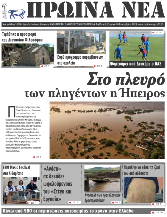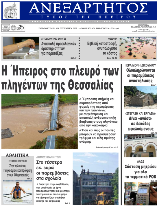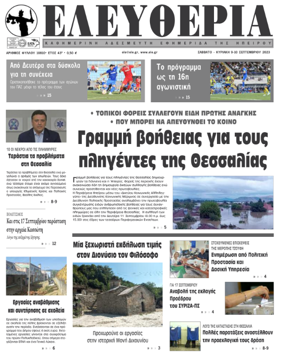 Διαβάστε στα πρωτοσέλιδα των γιαννιώτικων εφημερίδων 9-10 Σεπτεμβρίου
