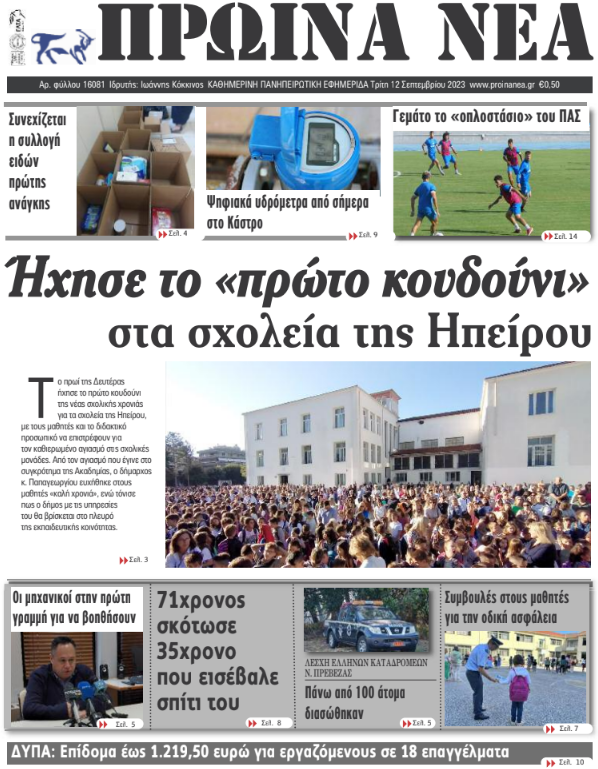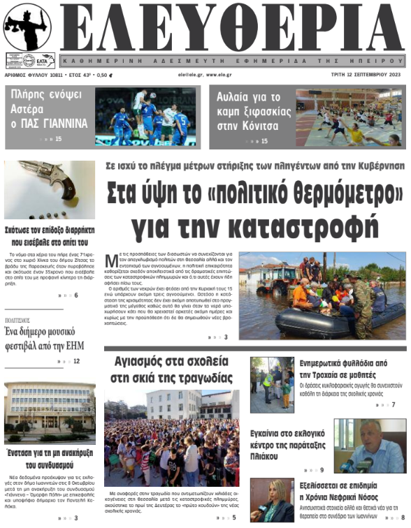 ΑρχικήΕΙΔΗΣΕΙΣΗΠΕΙΡΟΣ ΗΠΕΙΡΟΣ Τα πρωτοσέλιδα των γιαννιώτικων εφημερίδων 12.09.2023 324 FacebookTwitterWhatsAppEmailΤυπώνωViber Διαβάστε στα πρωτοσέλιδα των γιαννιώτικων εφημερίδων της Τρίτης 12 Σεπτεμβρίου TagsΓΙΑΝΝΙΩΤΙΚΕΣ ΕΦΗΜΕΡΙΔΕΣΠΡΩΤΟΣΕΛΙΔΑ FacebookTwitterWhatsAppEmailΤυπώνωViber Προηγούμενο άρθροΤρεις νεκροί από φωτιά σε συγκρότημα κατοικιών στην ΙαπωνίαΕπόμενο άρθροΈνσταση από την παράταξη Κολόκα για τη μη ανακήρυξη ΣΧΕΤΙΚΑ ΑΡΘΡΑ Τα πρωτοσέλιδα των γιαννιώτικων εφημερίδων TOP STORIES 11.11.2025 Τα πρωτοσέλιδα των γιαννιώτικων εφημερίδων TOP STORIES 08.11.2025 Τα πρωτοσέλιδα των γιαννιώτικων εφημερίδων ΗΠΕΙΡΟΣ 07.11.2025 Τα πρωτοσέλιδα των γιαννιώτικων εφημερίδων ΗΠΕΙΡΟΣ 06.11.2025 Τα πρωτοσέλιδα των γιαννιώτικων εφημερίδων ΗΠΕΙΡΟΣ 05.11.2025 Τα πρωτοσέλιδα των γιαννιώτικων εφημερίδων ΗΠΕΙΡΟΣ 04.11.2025 ΣΤΗΝ ΙΔΙΑ ΚΑΤΗΓΟΡΙΑ Ενημερωτική δράση για τον σακχαρώδη διαβήτη στα Ιωάννινα ΗΠΕΙΡΟΣ 11.11.2025 Συνελήφθη αλλοδαπός διωκόμενος στην Κακαβιά ΗΠΕΙΡΟΣ 11.11.2025 Κατασχέθηκαν 45 αρνιά στην Πρέβεζα – Δύο συλλήψεις ΗΠΕΙΡΟΣ 11.11.2025 43χρονος βρέθηκε νεκρός εντός Ι.Χ. στο Τέροβο ΗΠΕΙΡΟΣ 11.11.2025 Επί τάπητος υποδομές, περιβάλλον και ΤΠΣ ΗΠΕΙΡΟΣ 11.11.2025 Σε αυξημένη ετοιμότητα η Ήπειρος για τη γρίπη των πτηνών ΗΠΕΙΡΟΣ 11.11.2025 ΜΗ ΧΑΣΕΤΕ 43χρονος βρέθηκε νεκρός εντός Ι.Χ. στο Τέροβο Επίδομα θέρμανσης: Νέες οδηγίες της ΑΑΔΕ Σε αυξημένη ετοιμότητα η Ήπειρος για τη γρίπη των πτηνών Δωρεά ζωής από ασθενή στο ΠΓΝΙ Νέες αντιδράσεις για τις παρεμβάσεις στο Γράμμο ΔΗΜΟΦΙΛΗ Αυτοκριτική και συλλογική ανάληψη ευθυνών Πώς έληξε το shutdown στις ΗΠΑ μετά από 40 ημέρες Επίδομα παραμεθορίου στα στελέχη των Ενόπλων Δυνάμεων ΠΟΥ: Ένα στα επτά παιδιά και εφήβους στην Ευρώπη ζει με ψυχική διαταραχή Η αναπτυξιακή δυναμική της ελληνικής Χειροτεχνίας