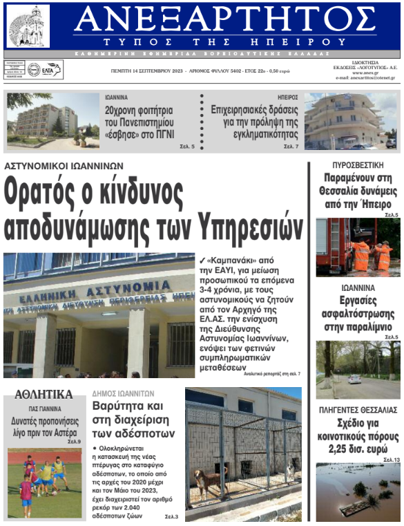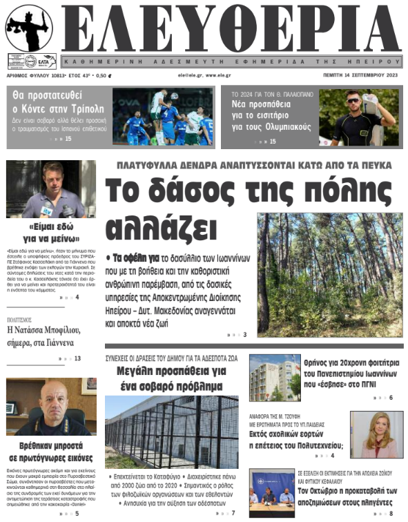 ΑρχικήΕΙΔΗΣΕΙΣΗΠΕΙΡΟΣ ΗΠΕΙΡΟΣ Τα πρωτοσέλιδα των γιαννιώτικων εφημερίδων 14.09.2023 270 FacebookTwitterWhatsAppEmailΤυπώνωViber Διαβάστε στα πρωτοσέλιδα των γιαννιώτικων εφημερίδων της Πέμπτης 14 Σεπτεμβρίου TagsΓΙΑΝΝΙΩΤΙΚΕΣ ΕΦΗΜΕΡΙΔΕΣΠΡΩΤΟΣΕΛΙΔΑ FacebookTwitterWhatsAppEmailΤυπώνωViber Προηγούμενο άρθροΝέα προσπάθεια για τον Παλαιοπάνο και το Ολυμπιακό ΕισιτήριοΕπόμενο άρθροΒρέθηκαν μπροστά σε πρωτόγνωρες εικόνες ΣΧΕΤΙΚΑ ΑΡΘΡΑ Τα πρωτοσέλιδα των γιαννιώτικων εφημερίδων TOP STORIES 29.11.2025 Τα πρωτοσέλιδα των γιαννιώτικων εφημερίδων ΗΠΕΙΡΟΣ 28.11.2025 Τα πρωτοσέλιδα των γιαννιώτικων εφημερίδων ΗΠΕΙΡΟΣ 27.11.2025 Τα πρωτοσέλιδα των γιαννιώτικων εφημερίδων ΗΠΕΙΡΟΣ 26.11.2025 Τα πρωτοσέλιδα των γιαννιώτικων εφημερίδων ΗΠΕΙΡΟΣ 25.11.2025 Τα πρωτοσέλιδα των γιαννιώτικων εφημερίδων ΗΠΕΙΡΟΣ 22.11.2025 ΣΤΗΝ ΙΔΙΑ ΚΑΤΗΓΟΡΙΑ Βγαίνουν και στους δρόμους της Ηπείρου τα τρακτέρ ΗΠΕΙΡΟΣ 29.11.2025 Στο Προεδρικό Μέγαρο η ομάδα I-GEM Ioannina ΗΠΕΙΡΟΣ 29.11.2025 Σχέδιο για Παιδοψυχιατρική Κλινική στα Ιωάννινα ΗΠΕΙΡΟΣ 29.11.2025 Τα προβλήματα να γίνουν αφορμή για βελτίωση ΗΠΕΙΡΟΣ 29.11.2025 Μαζική διαμαρτυρία για την κεραία δίπλα στο σχολείο ΗΠΕΙΡΟΣ 29.11.2025 Κοινή ευθύνη η ανθεκτικότητα των πόλεων ΗΠΕΙΡΟΣ 29.11.2025 ΜΗ ΧΑΣΕΤΕ Στο Προεδρικό Μέγαρο η ομάδα I-GEM Ioannina Σχέδιο για Παιδοψυχιατρική Κλινική στα Ιωάννινα Τα προβλήματα να γίνουν αφορμή για βελτίωση Μαζική διαμαρτυρία για την κεραία δίπλα στο σχολείο Κοινή ευθύνη η ανθεκτικότητα των πόλεων ΔΗΜΟΦΙΛΗ Κοινή ευθύνη η ανθεκτικότητα των πόλεων Τα προβλήματα να γίνουν αφορμή για βελτίωση Σχέδιο για Παιδοψυχιατρική Κλινική στα Ιωάννινα Τα του Καίσαρος… Βγαίνουν και στους δρόμους της Ηπείρου τα τρακτέρ