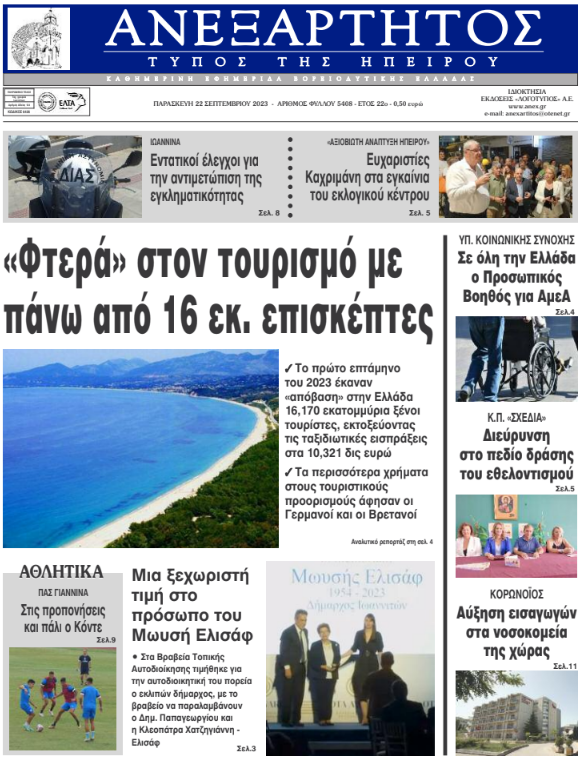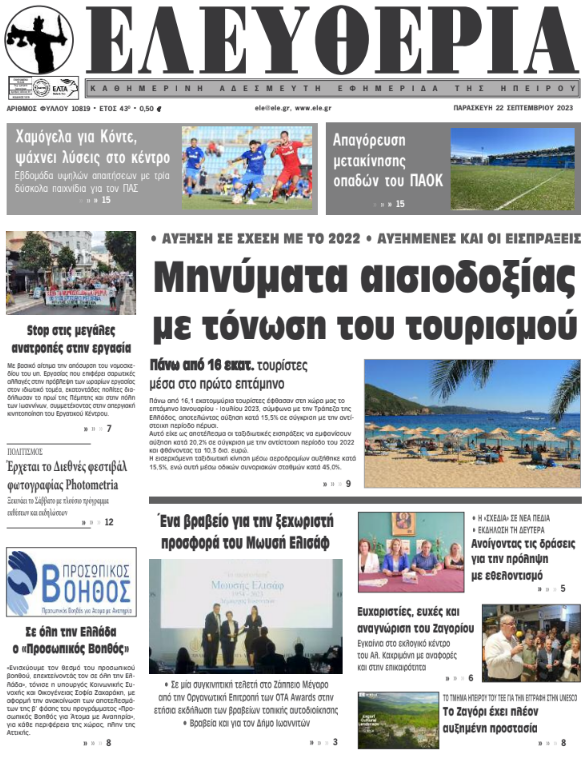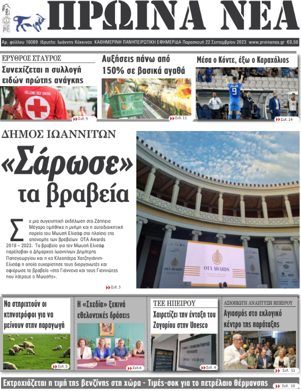 ΑρχικήΕΙΔΗΣΕΙΣΗΠΕΙΡΟΣ ΗΠΕΙΡΟΣ Τα πρωτοσέλιδα των γιαννιώτικων εφημερίδων 22.09.2023 0 FacebookTwitterWhatsAppEmailΤυπώνωViber Διαβάστε στα πρωτοσέλιδα των γιαννιώτικων εφημερίδων της Παρασκευής 22 Σεπτεμβρίου TagsΓΙΑΝΝΙΩΤΙΚΕΣ ΕΦΗΜΕΡΙΔΕΣΠΡΩΤΟΣΕΛΙΔΑ FacebookTwitterWhatsAppEmailΤυπώνωViber Προηγούμενο άρθροΕυχαριστίες, ευχές και αναγνώριση του ΖαγορίουΕπόμενο άρθροStop στις μεγάλες ανατροπές στην εργασία ΣΧΕΤΙΚΑ ΑΡΘΡΑ Τα πρωτοσέλιδα των γιαννιώτικων εφημερίδων ΗΠΕΙΡΟΣ 19.12.2025 Τα πρωτοσέλιδα των γιαννιώτικων εφημερίδων ΗΠΕΙΡΟΣ 18.12.2025 Τα πρωτοσέλιδα των γιαννιώτικων εφημερίδων ΗΠΕΙΡΟΣ 17.12.2025 Τα πρωτοσέλιδα των γιαννιώτικων εφημερίδων ΗΠΕΙΡΟΣ 16.12.2025 Τα πρωτοσέλιδα των γιαννιώτικων εφημερίδων ΗΠΕΙΡΟΣ 13.12.2025 Τα πρωτοσέλιδα των γιαννιώτικων εφημερίδων ΗΠΕΙΡΟΣ 12.12.2025 ΣΤΗΝ ΙΔΙΑ ΚΑΤΗΓΟΡΙΑ Ξεκάθαρο «ναι» στη δημιουργία νέου πολιτικού κόμματος από τη Μαρία Καρυστιανού ΗΠΕΙΡΟΣ 19.12.2025 1 εκ. ευρώ για παρεμβάσεις σε Ιωάννινα και Πέραμα TOP STORIES 19.12.2025 Αναπροσαρμογή τελών καθαριότητας και φωτισμού στον Δήμο Ιωαννιτών ΗΠΕΙΡΟΣ 19.12.2025 Εγκρίθηκε ο νέος Οργανισμός Εσωτερικής Υπηρεσίας του Δήμου Ιωαννιτών ΗΠΕΙΡΟΣ 19.12.2025 Συνελήφθη φυγόποινος για εκκρεμή καταδικαστική απόφαση ΗΠΕΙΡΟΣ 19.12.2025 Συλλήψεις στην Ήπειρο για κατοχή ναρκωτικών το τελευταίο δεκαήμερο ΗΠΕΙΡΟΣ 19.12.2025 ΜΗ ΧΑΣΕΤΕ Ξεκάθαρο «ναι» στη δημιουργία νέου πολιτικού κόμματος από τη Μαρία Καρυστιανού 1 εκ. ευρώ για παρεμβάσεις σε Ιωάννινα και Πέραμα Αναπροσαρμογή τελών καθαριότητας και φωτισμού στον Δήμο Ιωαννιτών Κριτική και ενστάσεις για το σχέδιο τουριστικής προβολής της Περιφέρειας Ηπείρου Χρήματα πριν τις γιορτές: Νωρίτερα συντάξεις, επιδόματα και Δώρο Χριστουγέννων ΔΗΜΟΦΙΛΗ Γερμανία: 61χρονος καταδικάστηκε για νάρκωση, βιασμό και βιντεοσκόπηση της συζύγου του Βρυξέλλες: Εκατοντάδες τρακτέρ και συγκρούσεις κοντά στο Ευρωπαϊκό Κοινοβούλιο Αναπροσαρμογή τελών καθαριότητας και φωτισμού στον Δήμο Ιωαννιτών Οι Ανανεώσιμες Πηγές Ενέργειας υπερβαίνουν τον άνθρακα και σηματοδοτούν ιστορική στροφή το 2025 Στη Βουλή το νομοσχέδιο για το «Νέο Εθνικό Πρόγραμμα Ανάπτυξης»