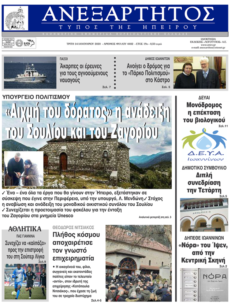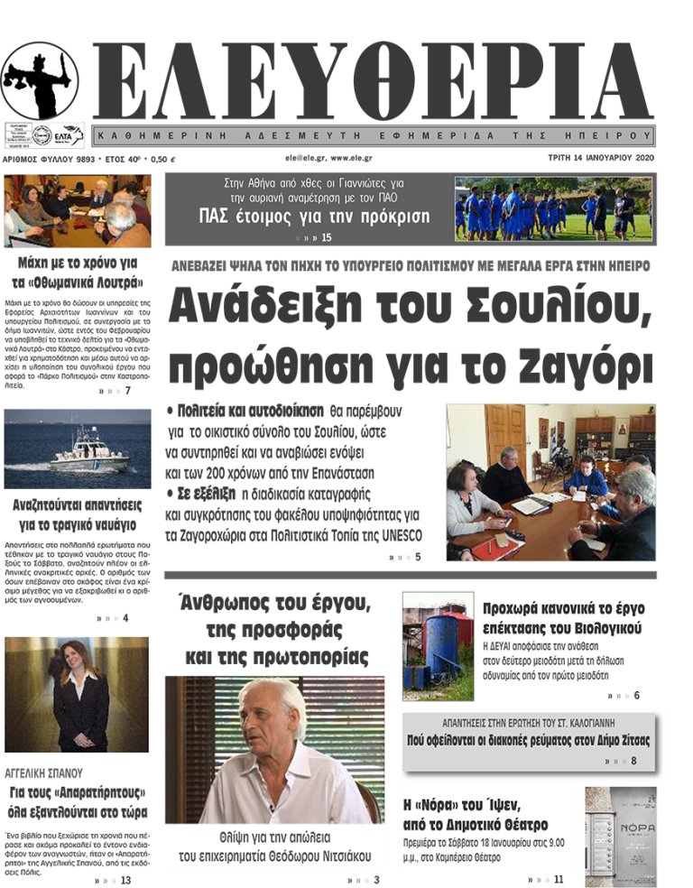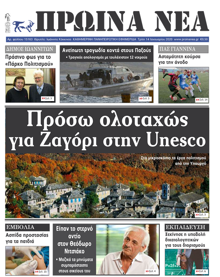 Διαβάστε στα πρωτοσέλιδα των γιαννιώτικων εφημερίδων σήμερα, Τρίτη 14 Ιανουαρίου.