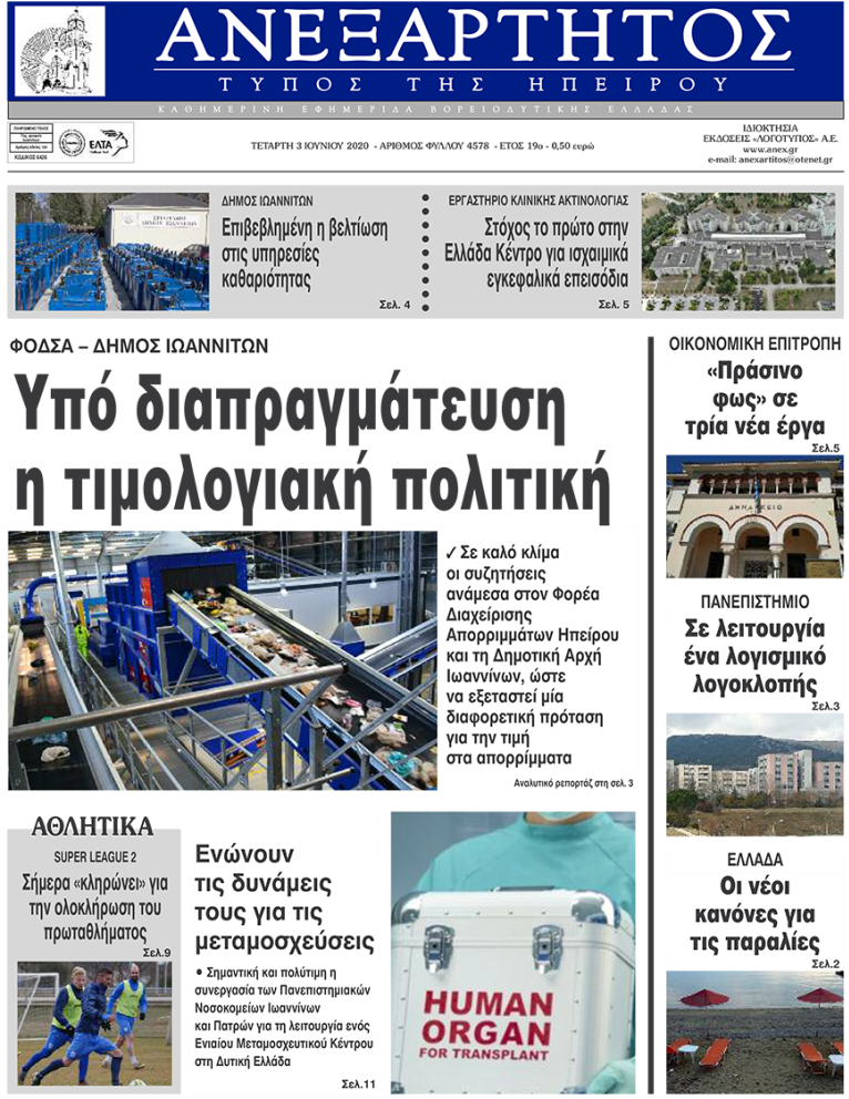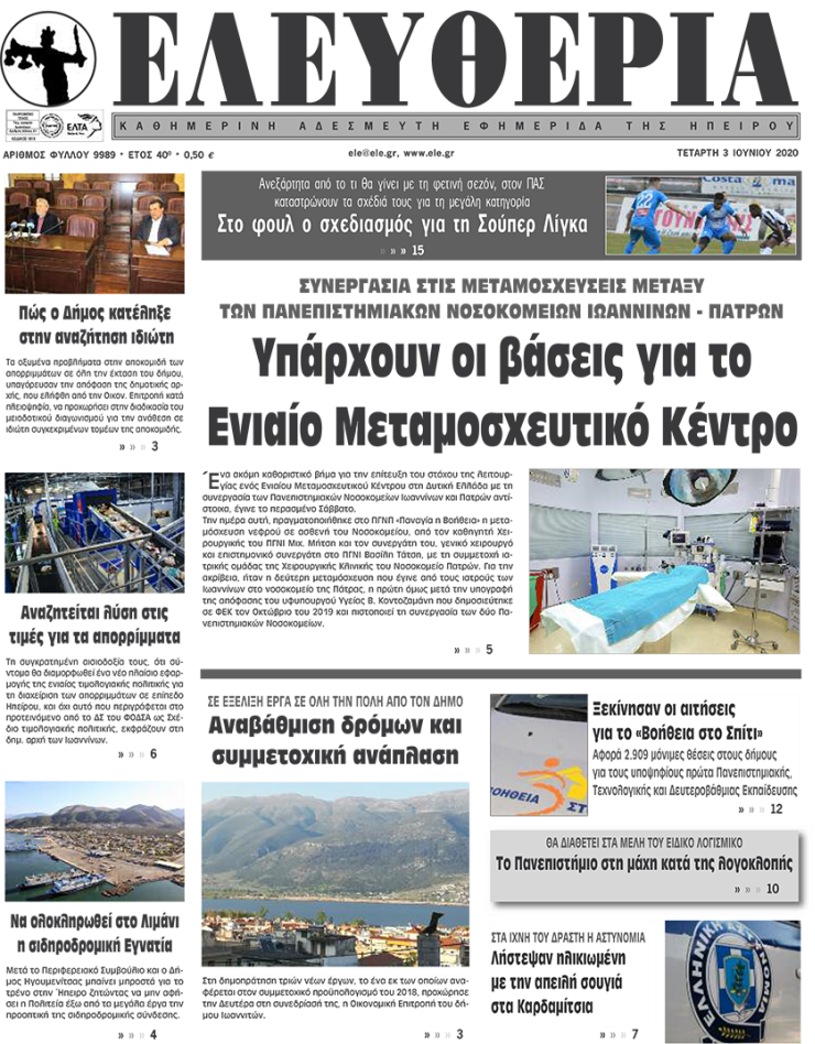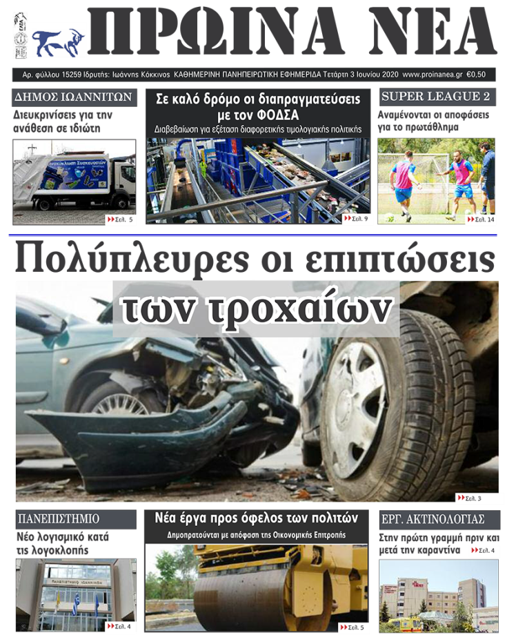 Διαβάστε στα πρωτοσέλιδα των γιαννιώτικων εφημερίδων σήμερα, Τετάρτη 3 Ιουνίου