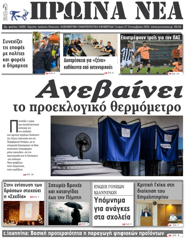 Διαβάστε στα πρωτοσέλιδα των γιαννιώτικων εφημερίδων της Τετάρτης 27 Σεπτεμβρίου