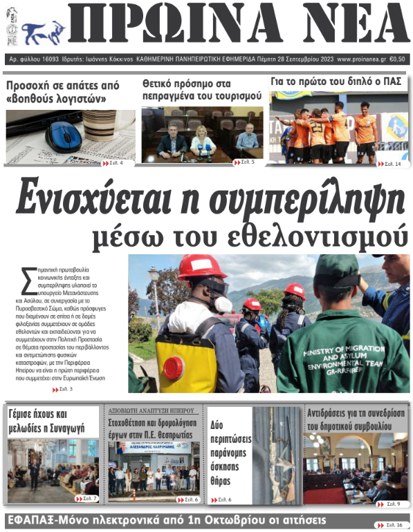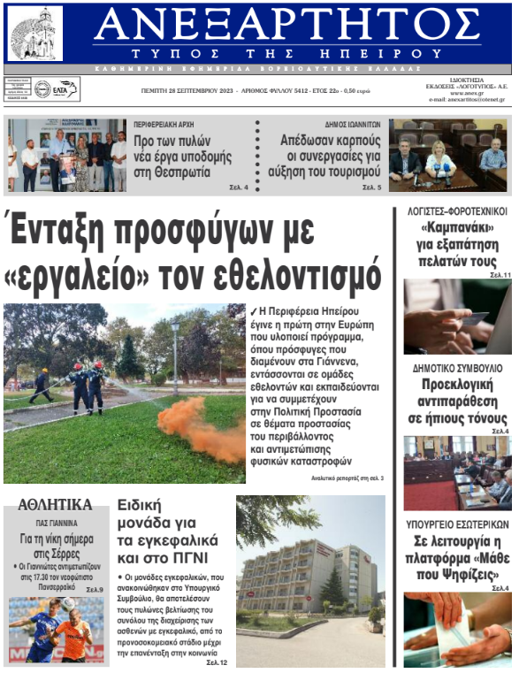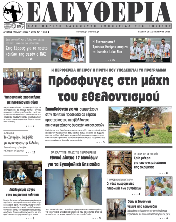 ΑρχικήΕΙΔΗΣΕΙΣΗΠΕΙΡΟΣ ΗΠΕΙΡΟΣ Τα πρωτοσέλιδα των γιαννιώτικων εφημερίδων 28.09.2023 0 FacebookTwitterWhatsAppEmailΤυπώνωViber Διαβάστε στα πρωτοσέλιδα των γιαννιώτικων εφημερίδων της Πέμπτης 28 Σεπτεμβρίου TagsΓΙΑΝΝΙΩΤΙΚΕΣ ΕΦΗΜΕΡΙΔΕΣΠΡΩΤΟΣΕΛΙΔΑ FacebookTwitterWhatsAppEmailΤυπώνωViber Προηγούμενο άρθροΚακοκαιρία Elias: Εκκενώνονται χωριά σε Φθιώτιδα και Φάρσαλα –Ήχησε το 112Επόμενο άρθροΥπηρεσιακός χαρακτήρας με προεκλογική αύρα ΣΧΕΤΙΚΑ ΑΡΘΡΑ Τα πρωτοσέλιδα των γιαννιώτικων εφημερίδων ΗΠΕΙΡΟΣ 06.12.2025 Τα πρωτοσέλιδα των γιαννιώτικων εφημερίδων ΗΠΕΙΡΟΣ 05.12.2025 Τα πρωτοσέλιδα των γιαννιώτικων εφημερίδων ΗΠΕΙΡΟΣ 04.12.2025 Τα πρωτοσέλιδα των γιαννιώτικων εφημερίδων ΗΠΕΙΡΟΣ 03.12.2025 Τα πρωτοσέλιδα των γιαννιώτικων εφημερίδων ΗΠΕΙΡΟΣ 02.12.2025 Τα πρωτοσέλιδα των γιαννιώτικων εφημερίδων ΗΠΕΙΡΟΣ 29.11.2025 ΣΤΗΝ ΙΔΙΑ ΚΑΤΗΓΟΡΙΑ H ΝΙΚΗ χαιρετίζει το 1ο Πολυθεματικό Επιστημονικό Συνέδριο ΟΤΑ στα Ιωάννινα ΗΠΕΙΡΟΣ 08.12.2025 Ολική διακοπή κυκλοφορίας στην Ιόνια Οδό λόγω αγροτικών κινητοποιήσεων ΗΠΕΙΡΟΣ 08.12.2025 Πραγματοποιήθηκε η 1η συνάντηση εργασίας του έργου «Metronome» σε Κοζάνη και Ιωάννινα ΗΠΕΙΡΟΣ 08.12.2025 Ανησυχητικά τα στοιχεία για τους πρόωρους θανάτους από PM2.5 – Στο “κόκκινο” τα Ιωάννινα ΗΠΕΙΡΟΣ 08.12.2025 Εξιχνιάστηκε υπόθεση υπεξαίρεσης πορτοφολιού στην Ηγουμενίτσα ΗΠΕΙΡΟΣ 08.12.2025 Βήμα-βήμα προς την επίσημη αναγνώριση της Μάχης της Αετορράχης ως τοπικής δημόσιας γιορτής ΗΠΕΙΡΟΣ 08.12.2025 ΜΗ ΧΑΣΕΤΕ Μπλόκα αγροτών: Αποκλεισμοί σε Εθνική, Εγνατία και Ιόνια Οδό Δυναμώνει η φωνή των αγροτών- Συλλαλητήριο στον κόμβο του αεροδρομίου (βίντεο) «Ασπίδα κατά της παραπληροφόρησης ο τοπικός Τύπος» Φιάσκο για την ΕΛ.ΑΣ η διαφυγή των ληστών στην Αλβανία Έντονες αντιδράσεις για τη μεταφορά ζωικών αποβλήτων ΔΗΜΟΦΙΛΗ Πού αναμένονται τοπικές βροχές και καταιγίδες Η ρύπανση από πλαστικό θα υπερδιπλασιαστεί παγκοσμίως έως το 2040 Τι φέρνει ο «Ωμέγα Εμποδιστής» – Η πρώτη εικόνα για τα Χριστούγεννα Ινδονησία: Στους 950 οι νεκροί από τις πλημμύρες – Περισσότεροι από 270 αγνοούμενοι Κουμής: Κύπρος και Ελλάδα κάτω από το πέπλο του ίδιου ουρανού που άντεξε αναστεναγμούς αιώνων (video)