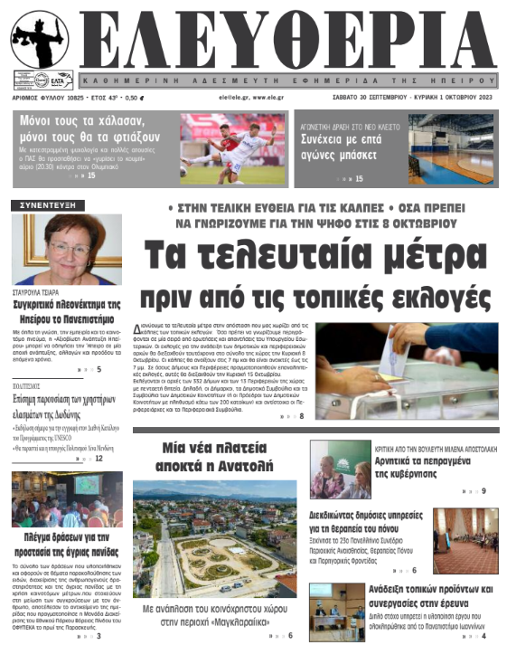 Διαβάστε στα πρωτοσέλιδα των γιαννιώτικων εφημερίδων 30 Σεπτεμβρίου – 1 Οκτωβρίου