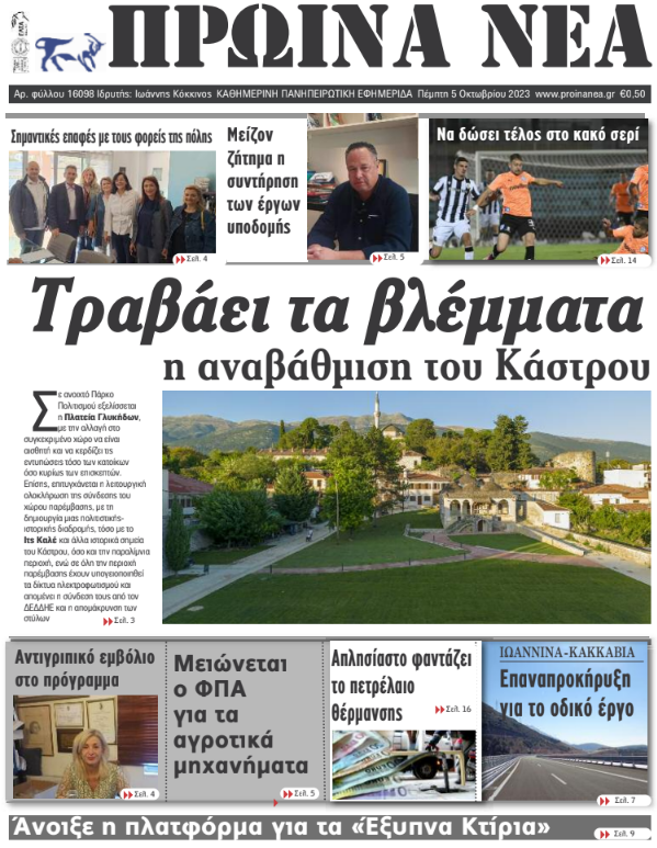 Διαβάστε στα πρωτοσέλιδα των γιαννιώτικων εφημερίδων της Πέμπτης 5 Οκτωβρίου