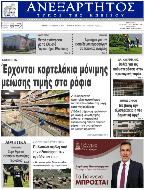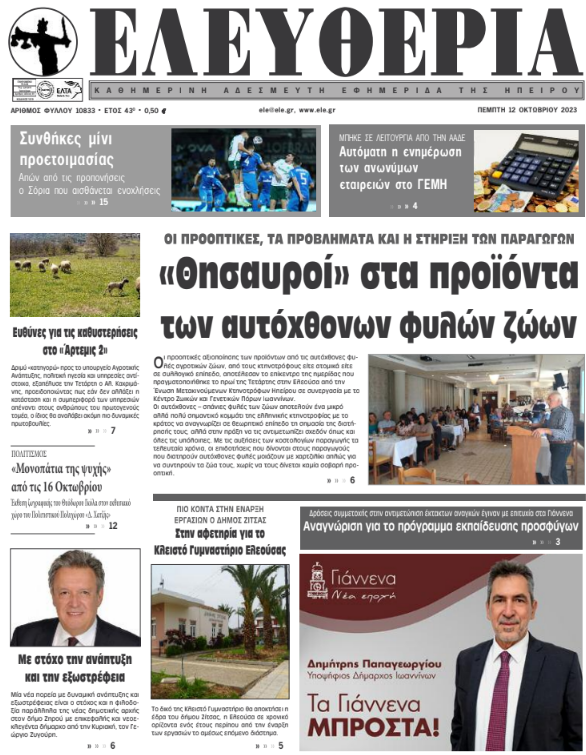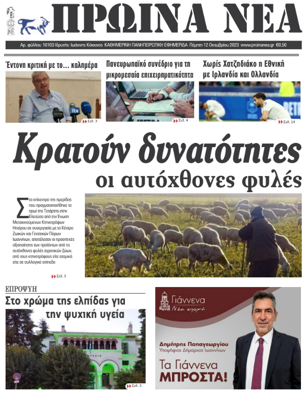 ΑρχικήΕΙΔΗΣΕΙΣΗΠΕΙΡΟΣ ΗΠΕΙΡΟΣ Τα πρωτοσέλιδα των γιαννιώτικων εφημερίδων 12.10.2023 0 FacebookTwitterWhatsAppEmailΤυπώνωViber Διαβάστε στα πρωτοσέλιδα των γιαννιώτικων εφημερίδων της Πέμπτης 12 Οκτωβρίου TagsΓΙΑΝΝΙΩΤΙΚΕΣ ΕΦΗΜΕΡΙΔΕΣΠΡΩΤΟΣΕΛΙΔΑ FacebookTwitterWhatsAppEmailΤυπώνωViber Προηγούμενο άρθροΕυθύνες για τις καθυστερήσεις στο «Άρτεμις 2»Επόμενο άρθροΣτην αφετηρία για το Κλειστό Γυμναστήριο Ελεούσας ΣΧΕΤΙΚΑ ΑΡΘΡΑ Τα πρωτοσέλιδα των γιαννιώτικων εφημερίδων TOP STORIES 30.10.2025 Τα πρωτοσέλιδα των γιαννιώτικων εφημερίδων ΗΠΕΙΡΟΣ 28.10.2025 Τα πρωτοσέλιδα των γιαννιώτικων εφημερίδων ΗΠΕΙΡΟΣ 25.10.2025 Τα πρωτοσέλιδα των γιαννιώτικων εφημερίδων ΗΠΕΙΡΟΣ 24.10.2025 Τα πρωτοσέλιδα των γιαννιώτικων εφημερίδων ΗΠΕΙΡΟΣ 23.10.2025 Τα πρωτοσέλιδα των γιαννιώτικων εφημερίδων ΗΠΕΙΡΟΣ 22.10.2025 ΣΤΗΝ ΙΔΙΑ ΚΑΤΗΓΟΡΙΑ Με ηλεκτροκίνητο αποφρακτικό όχημα ενισχύει τις υπηρεσίες του ο Δήμος Ζίτσας ΗΠΕΙΡΟΣ 30.10.2025 Στ. Ζούμπας: Η περιφέρεια δεν αντέχει άλλη απομόνωση ΗΠΕΙΡΟΣ 30.10.2025 Απαλλαγή ΕΝΦΙΑ 3 έτη για τους πυρόπληκτους του Ν. Πρεβέζης ΗΠΕΙΡΟΣ 30.10.2025 Αίτημα για ένταξη της Μονάδας Μεσογειακής Αναιμίας στον νέο Οργανισμό του ΠΓΝΙ ΗΠΕΙΡΟΣ 30.10.2025 Έντονες αντιδράσεις σε Ζαγόρι και Ζίτσα για το κλείσιμο ταχυδρομικών γραφείων ΗΠΕΙΡΟΣ 30.10.2025 Ο πολιτισμός πιο κοντά στις ευάλωτες κοινωνικές ομάδες ΗΠΕΙΡΟΣ 30.10.2025 ΜΗ ΧΑΣΕΤΕ Ο πολιτισμός στο επίκεντρο της αναπτυξιακής στρατηγικής του Δήμου Ιωαννιτών Ετοιμάζει αλλαγές αντιδημάρχων ο Θ. Μπέγκας Πληρότητες-ρεκόρ στα Ιωάννινα το τετραήμερο της 28ης Οκτωβρίου – Προκλήσεις στην εστίαση και τις υποδομές Τα πρωτοσέλιδα των γιαννιώτικων εφημερίδων Οδηγείται σε «ναυάγιο» το έργο των led; ΔΗΜΟΦΙΛΗ Ετοιμάζει αλλαγές αντιδημάρχων ο Θ. Μπέγκας Διεθνές Γραφείο του Πανεπιστημίου Ιωαννίνων στη Νέα Υόρκη Αίθριος ο καιρός τις επόμενες ημέρες 3,4 εκατ. ευρώ για αντικατάσταση δικτύων ύδρευσης στους Δήμους Σουλίου και Φιλιατών Άσκηση εκκένωσης στο Υπουργείο Παιδείας μετά από 17 χρόνια