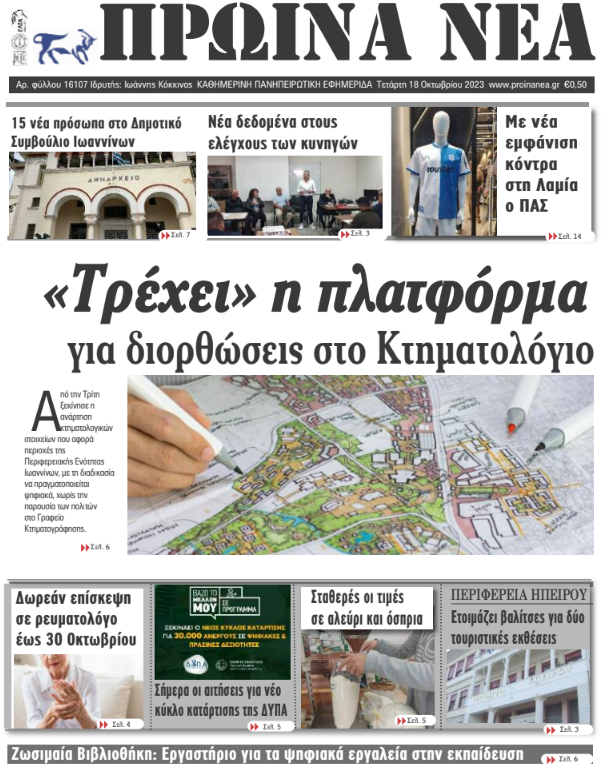 Διαβάστε στα πρωτοσέλιδα των γιαννιώτικων εφημερίδων της Τετάρτης 18 Οκτωβρίου
