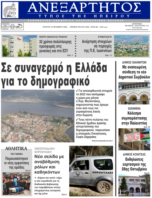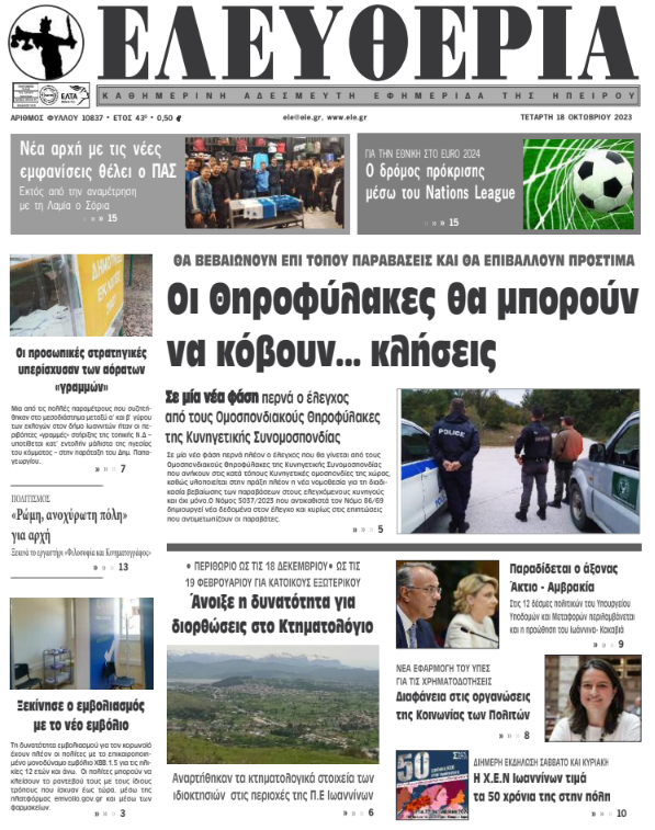 Διαβάστε στα πρωτοσέλιδα των γιαννιώτικων εφημερίδων της Τετάρτης 18 Οκτωβρίου