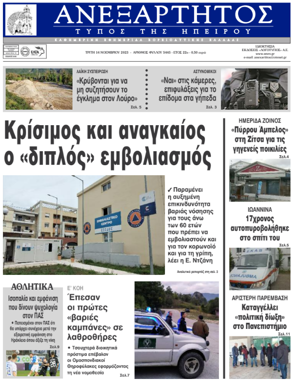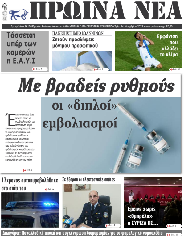 ΑρχικήΕΙΔΗΣΕΙΣΗΠΕΙΡΟΣ ΗΠΕΙΡΟΣ Τα πρωτοσέλιδα των γιαννιώτικων εφημερίδων 14.11.2023 0 FacebookTwitterWhatsAppEmailΤυπώνωViber Διαβάστε στα πρωτοσέλιδα των γιαννιώτικων εφημερίδων της Τρίτης 14 Νοεμβρίου TagsΓΙΑΝΝΙΩΤΙΚΕΣ ΕΦΗΜΕΡΙΔΕΣΠΡΩΤΟΣΕΛΙΔΑ FacebookTwitterWhatsAppEmailΤυπώνωViber Προηγούμενο άρθροΣυντάξεις Δεκεμβρίου 2023: Πληρωμές σε δύο δόσεις στους συνταξιούχους Επόμενο άρθροΑνάγκη για πρόσληψη μόνιμου προσωπικού ΣΧΕΤΙΚΑ ΑΡΘΡΑ Τα πρωτοσέλιδα των γιαννιώτικων εφημερίδων ΗΠΕΙΡΟΣ 05.11.2025 Τα πρωτοσέλιδα των γιαννιώτικων εφημερίδων ΗΠΕΙΡΟΣ 04.11.2025 Τα πρωτοσέλιδα των γιαννιώτικων εφημερίδων TOP STORIES 01.11.2025 Τα πρωτοσέλιδα των γιαννιώτικων εφημερίδων ΗΠΕΙΡΟΣ 31.10.2025 Τα πρωτοσέλιδα των γιαννιώτικων εφημερίδων ΗΠΕΙΡΟΣ 30.10.2025 Τα πρωτοσέλιδα των γιαννιώτικων εφημερίδων ΗΠΕΙΡΟΣ 28.10.2025 ΣΤΗΝ ΙΔΙΑ ΚΑΤΗΓΟΡΙΑ «Άναψε πράσινο» για Σωφρονιστικό Κατάστημα στους Φιλιάτες ΗΠΕΙΡΟΣ 05.11.2025 206 πυρκαγιές με 61.000 καμένα στρέμματα στην Ήπειρο ΗΠΕΙΡΟΣ 05.11.2025 Κινητοποιήσεις για τα ΕΛΤΑ σε Μέτσοβο – Καναλάκι TOP STORIES 05.11.2025 Αντιπαράθεση στη Ζίτσα για τη στάση της αντιπολίτευσης στο Δημοτικό Συμβούλιο ΗΠΕΙΡΟΣ 05.11.2025 Δήμος Ζίτσας: Απόφαση σταθμός της δημοτική αρχής για τη συνέχιση της λειτουργίας των ΕΛ.ΤΑ. ΗΠΕΙΡΟΣ 05.11.2025 Τμηματική διακοπή κυκλοφορίας στην 28ης Οκτωβρίου λόγω εργασιών διαγράμμισης ΗΠΕΙΡΟΣ 05.11.2025 ΜΗ ΧΑΣΕΤΕ «Άναψε πράσινο» για Σωφρονιστικό Κατάστημα στους Φιλιάτες 206 πυρκαγιές με 61.000 καμένα στρέμματα στην Ήπειρο Κινητοποιήσεις για τα ΕΛΤΑ σε Μέτσοβο – Καναλάκι Δήμος Ζίτσας: Απόφαση σταθμός της δημοτική αρχής για τη συνέχιση της λειτουργίας των ΕΛ.ΤΑ. Προτάσεις του ΤΕΕ για τη συνέχιση της λειτουργίας και των έργων της Εγνατίας ΔΗΜΟΦΙΛΗ Ξεκίνησε η Β΄ φάση των μετεγγραφών φοιτητών ΟΠΕΚΕΠΕ: Το σχέδιο για τον εκσυγχρονισμό των επιδοτήσεων Τα 4 μέτρα που θα ενισχύσουν το εισόδημα 2,6 εκατ. συνταξιούχων Μαμντάνι: Ποιος είναι ο νέος δήμαρχος της Νέας Υόρκης Η αγορά κρυπτονομισμάτων βιώνει σημαντική αστάθεια. Μήπως ξεκινά μια bear market; Η DLMining έχει αναδειχθεί ως μια νέα επιλογή για επενδυτές που αναζητούν σταθερές...