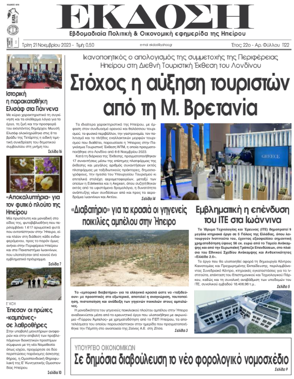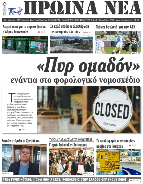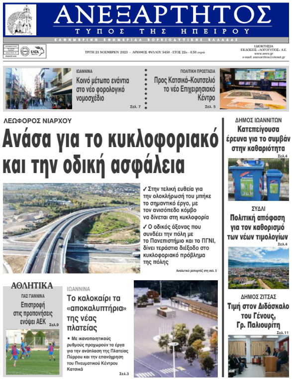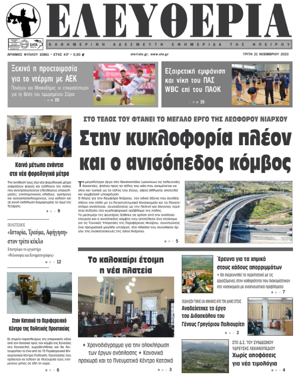 ΑρχικήTOP STORIES TOP STORIESΗΠΕΙΡΟΣ Τα πρωτοσέλιδα των γιαννιώτικων εφημερίδων 21.11.2023 0 FacebookTwitterWhatsAppEmailΤυπώνωViber Διαβάστε στα πρωτοσέλιδα των γιαννιώτικων εφημερίδων της Τρίτης 21 Νοεμβρίου TagsΓΙΑΝΝΙΩΤΙΚΕΣ ΕΦΗΜΕΡΙΔΕΣΠΡΩΤΟΣΕΛΙΔΑ FacebookTwitterWhatsAppEmailΤυπώνωViber Προηγούμενο άρθροΖάκυνθος: Πυροβόλησαν και σκότωσαν σκύλο σε αυλή σπιτιούΕπόμενο άρθροΑυτοί πώς το καταφέρνουν και άλλοι δεν μπορούν; ΣΧΕΤΙΚΑ ΑΡΘΡΑ Τα πρωτοσέλιδα των γιαννιώτικων εφημερίδων ΗΠΕΙΡΟΣ 22.11.2025 Τα πρωτοσέλιδα των γιαννιώτικων εφημερίδων ΗΠΕΙΡΟΣ 21.11.2025 Τα πρωτοσέλιδα των γιαννιώτικων εφημερίδων TOP STORIES 20.11.2025 Τα πρωτοσέλιδα των γιαννιώτικων εφημερίδων ΗΠΕΙΡΟΣ 19.11.2025 Τα πρωτοσέλιδα των γιαννιώτικων εφημερίδων ΗΠΕΙΡΟΣ 18.11.2025 Τα πρωτοσέλιδα των γιαννιώτικων εφημερίδων ΗΠΕΙΡΟΣ 15.11.2025 ΣΤΗΝ ΙΔΙΑ ΚΑΤΗΓΟΡΙΑ Αντίστροφη μέτρηση για το εορταστικό ωράριο Χριστουγέννων TOP STORIES 24.11.2025 Πτώση της θερμοκρασίας και τοπικές νεφώσεις – Ο καιρός της εβδομάδας TOP STORIES 24.11.2025 Ο «χάρτης» των πληρωμών από τον e-ΕΦΚΑ και τη ΔΥΠΑ έως τις 28 Νοεμβρίου TOP STORIES 24.11.2025 Με νέα γραμματεία και νέο κανονισμό λειτουργίας η «Ενότητα Πολιτών Νέα Γιάννενα» ΗΠΕΙΡΟΣ 24.11.2025 Σε κατάσταση έκτακτης ανάγκης ο Δήμος Ιωαννιτών ΗΠΕΙΡΟΣ 24.11.2025 Τροχαίο με δύο τραυματίες στην Καστρίτσα από εκτροπή ΙΧ ΗΠΕΙΡΟΣ 23.11.2025 ΜΗ ΧΑΣΕΤΕ Πρόοδος στις διαπραγματεύσεις για το αμερικανικό σχέδιο ειρήνης Αντίστροφη μέτρηση για το εορταστικό ωράριο Χριστουγέννων Επίδομα 250 ευρώ: Ποιοι πληρώνονται σήμερα – Αναλυτικά τα κριτήρια Πτώση της θερμοκρασίας και τοπικές νεφώσεις – Ο καιρός της εβδομάδας Ο «χάρτης» των πληρωμών από τον e-ΕΦΚΑ και τη ΔΥΠΑ έως τις 28 Νοεμβρίου ΔΗΜΟΦΙΛΗ Με νέα γραμματεία και νέο κανονισμό λειτουργίας η «Ενότητα Πολιτών Νέα Γιάννενα» Ανυποχώρητοι οι αγρότες – Μπλόκα από τις 30 Νοεμβρίου Επίδομα 250 ευρώ: Ποιοι πληρώνονται σήμερα – Αναλυτικά τα κριτήρια Πρόοδος στις διαπραγματεύσεις για το αμερικανικό σχέδιο ειρήνης Ο «χάρτης» των πληρωμών από τον e-ΕΦΚΑ και τη ΔΥΠΑ έως τις 28 Νοεμβρίου