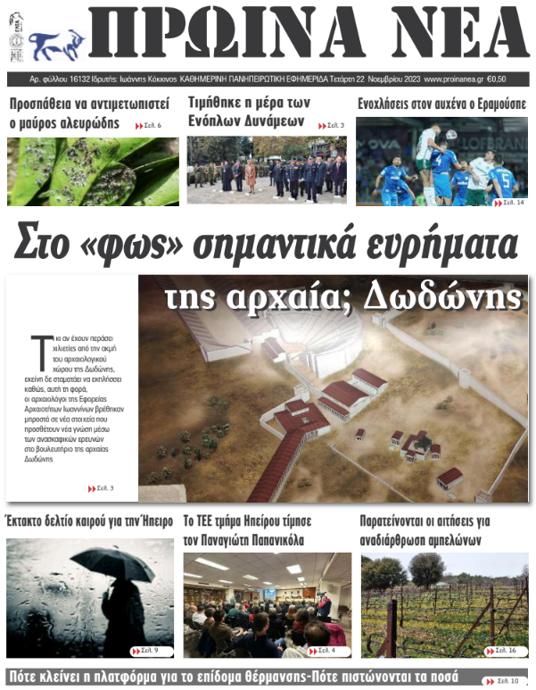 Διαβάστε στα πρωτοσέλιδα των γιαννιώτικων εφημερίδων της Τετάρτης 22 Νοεμβρίου