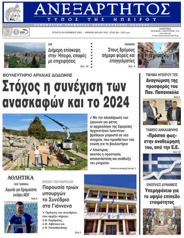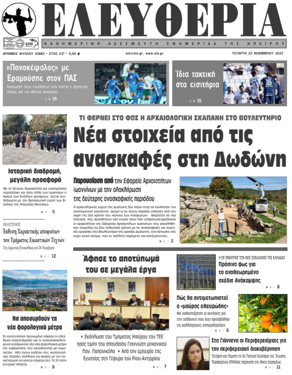 Διαβάστε στα πρωτοσέλιδα των γιαννιώτικων εφημερίδων της Τετάρτης 22 Νοεμβρίου
