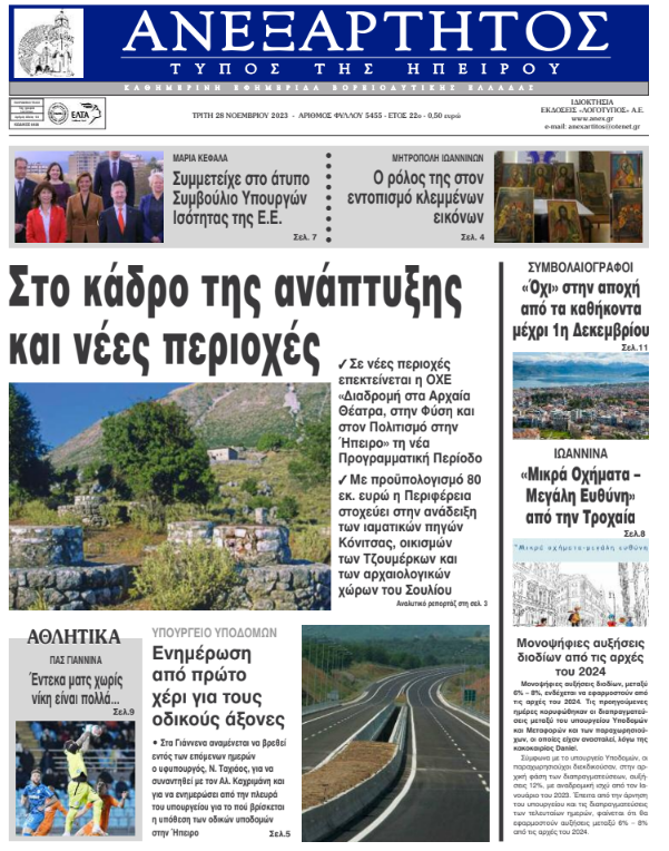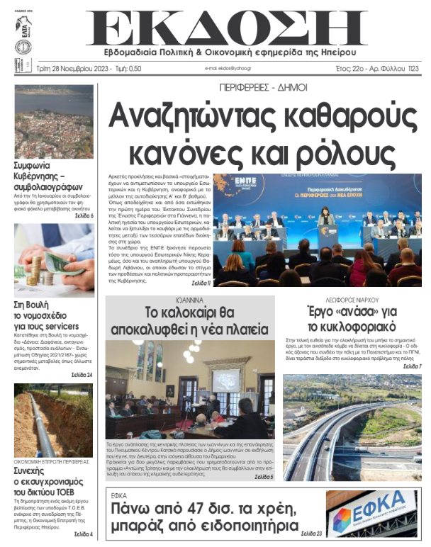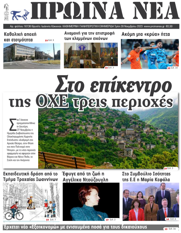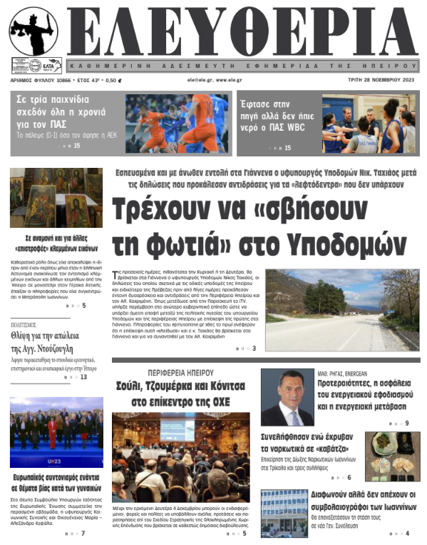 Διαβάστε στα πρωτοσέλιδα των γιαννιώτικων εφημερίδων της Τρίτης 28 Νοεμβρίου