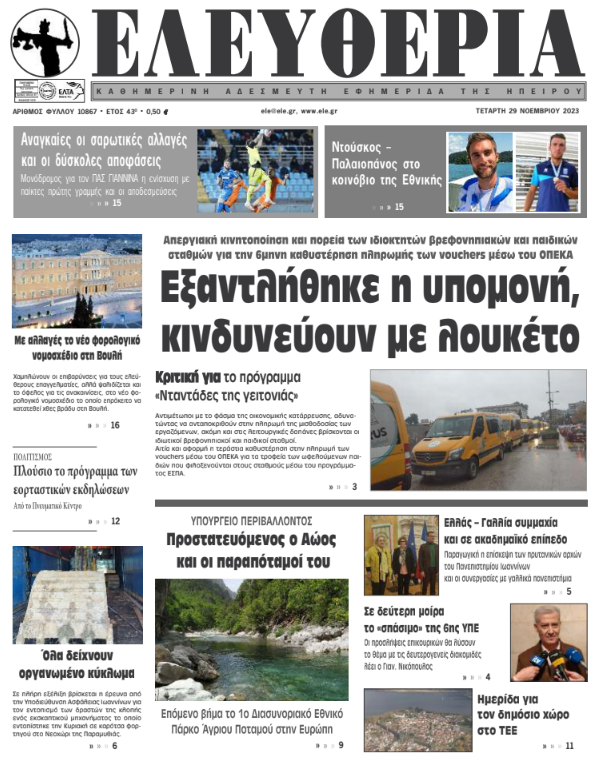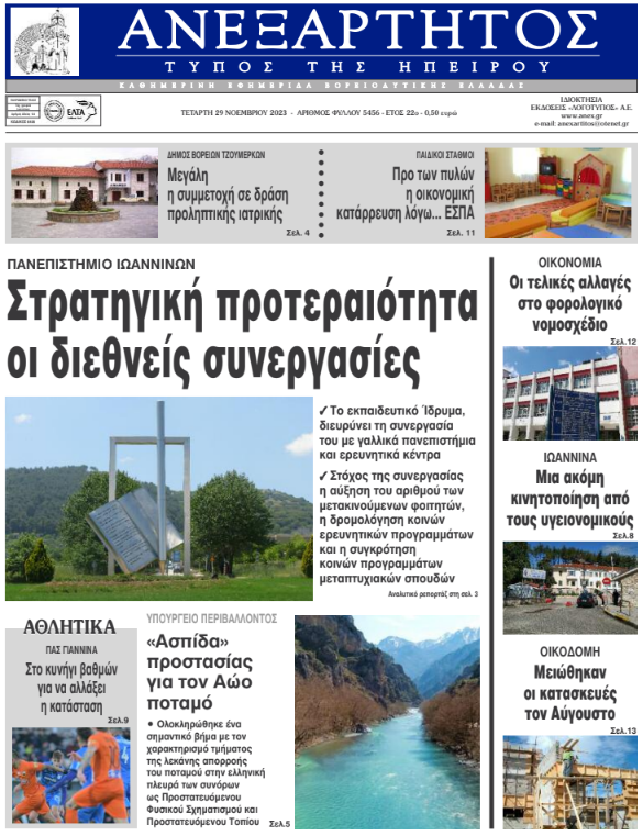 ΑρχικήΕΙΔΗΣΕΙΣΗΠΕΙΡΟΣ ΗΠΕΙΡΟΣ Τα πρωτοσέλιδα των γιαννιώτικων εφημερίδων 29.11.2023 0 FacebookTwitterWhatsAppEmailΤυπώνωViber Διαβάστε στα πρωτοσέλιδα των γιαννιώτικων εφημερίδων της Τετάρτης 29 Νοεμβρίου prt TagsΓΙΑΝΝΙΩΤΙΚΕΣ ΕΦΗΜΕΡΙΔΕΣΠΡΩΤΟΣΕΛΙΔΑ FacebookTwitterWhatsAppEmailΤυπώνωViber Προηγούμενο άρθροΑναγκαίες οι σαρωτικές αλλαγές και οι δύσκολες αποφάσειςΕπόμενο άρθροΌλα δείχνουν οργανωμένο κύκλωμα ΣΧΕΤΙΚΑ ΑΡΘΡΑ Τα πρωτοσέλιδα των γιαννιώτικων εφημερίδων TOP STORIES 14.11.2025 Τα πρωτοσέλιδα των γιαννιώτικων εφημερίδων ΗΠΕΙΡΟΣ 13.11.2025 Τα πρωτοσέλιδα των γιαννιώτικων εφημερίδων ΗΠΕΙΡΟΣ 12.11.2025 Τα πρωτοσέλιδα των γιαννιώτικων εφημερίδων ΗΠΕΙΡΟΣ 11.11.2025 Τα πρωτοσέλιδα των γιαννιώτικων εφημερίδων TOP STORIES 08.11.2025 Τα πρωτοσέλιδα των γιαννιώτικων εφημερίδων ΗΠΕΙΡΟΣ 07.11.2025 ΣΤΗΝ ΙΔΙΑ ΚΑΤΗΓΟΡΙΑ Ενιαίο αστικό πάρκο στις παλιές στρατιωτικές φυλακές ΗΠΕΙΡΟΣ 14.11.2025 Τα πρωτοσέλιδα των γιαννιώτικων εφημερίδων TOP STORIES 14.11.2025 Διεθνές Γραφείο του Πανεπιστημίου Ιωαννίνων στη Νέα Υόρκη ΗΠΕΙΡΟΣ 14.11.2025 Ανακοινώσεις του Δημάρχου Αρταίων Χριστ. Σιαφάκα στο Δημοτικό Συμβούλιο ΗΠΕΙΡΟΣ 13.11.2025 Δύο συλλήψεις για διαδοχικές κλοπές από σούπερ-μάρκετ ΗΠΕΙΡΟΣ 13.11.2025 Τιμητική διάκριση για τον Διευθυντή της Ογκολογικής Κλινικής του ΠΓΝΙ, Στέργιο Μπούσιο ΗΠΕΙΡΟΣ 13.11.2025 ΜΗ ΧΑΣΕΤΕ Ενιαίο αστικό πάρκο στις παλιές στρατιωτικές φυλακές Τα πρωτοσέλιδα των γιαννιώτικων εφημερίδων Επιχείρηση της Αστυνομίας Ιωαννίνων στον Πειραιά – Σύλληψη για ναρκωτικά και οπλισμό Δένδρο στην πλατεία, συναυλία στο Πνευματικό Κέντρο; «Λεόντειοι όροι» στη σύμβαση για τα LED ΔΗΜΟΦΙΛΗ Ποια πακέτα από Shein, Temu και AliExpress αφορά η επιβολή δασμών Ενιαίο αστικό πάρκο στις παλιές στρατιωτικές φυλακές Πένθος στον ΠΑΣ – Έφυγε από τη ζωή ο πατέρας του Νικ. Κούστα Αιτήσεις κατ’ εξαίρεση μετεγγραφών φοιτητών Καρκίνος του εντέρου σε νεότερες ηλικίες: Nέα μελέτη εξετάζει τον ρόλο της διατροφής
