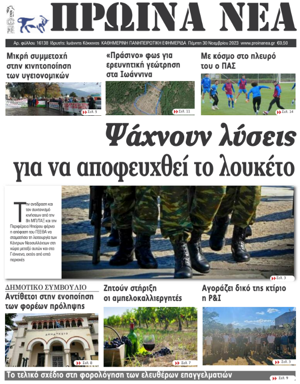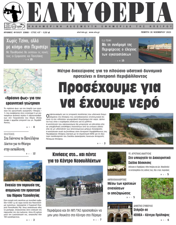 ΑρχικήTOP STORIES TOP STORIESΗΠΕΙΡΟΣ Τα πρωτοσέλιδα των γιαννιώτικων εφημερίδων 30.11.2023 0 FacebookTwitterWhatsAppEmailΤυπώνωViber Διαβάστε στα πρωτοσέλιδα των γιαννιώτικων εφημερίδων της Πέμπτης 30 Νοεμβρίου TagsΓΙΑΝΝΙΩΤΙΚΕΣ ΕΦΗΜΕΡΙΔΕΣΠΡΩΤΟΣΕΛΙΔΑ FacebookTwitterWhatsAppEmailΤυπώνωViber Προηγούμενο άρθροΧωρίς Τζίνο, αλλά με κόσμο στο ΠεριστέριΕπόμενο άρθροΔίπλα στο ΚΕΘΕΑ το Δημοτικό Συμβούλιο ΣΧΕΤΙΚΑ ΑΡΘΡΑ Τα πρωτοσέλιδα των γιαννιώτικων εφημερίδων ΗΠΕΙΡΟΣ 25.11.2025 Τα πρωτοσέλιδα των γιαννιώτικων εφημερίδων ΗΠΕΙΡΟΣ 22.11.2025 Τα πρωτοσέλιδα των γιαννιώτικων εφημερίδων ΗΠΕΙΡΟΣ 21.11.2025 Τα πρωτοσέλιδα των γιαννιώτικων εφημερίδων TOP STORIES 20.11.2025 Τα πρωτοσέλιδα των γιαννιώτικων εφημερίδων ΗΠΕΙΡΟΣ 19.11.2025 Τα πρωτοσέλιδα των γιαννιώτικων εφημερίδων ΗΠΕΙΡΟΣ 18.11.2025 ΣΤΗΝ ΙΔΙΑ ΚΑΤΗΓΟΡΙΑ Προ των πυλών δύο ισχυρά κύματα κακοκαιρίας – Αύριο το πρώτο «χτύπημα» TOP STORIES 25.11.2025 Εκδηλώσεις για τον ποιητή και ήρωα Λορέντζο Μαβίλη ΗΠΕΙΡΟΣ 25.11.2025 Στα Γιάννενα το 20ο Ετήσιο Συνέδριο του Δικτύου Υγιών Πόλεων ΗΠΕΙΡΟΣ 25.11.2025 Άνοδος 25 εκατοστών της στάθμης της λίμνης σε 15 ημέρες! ΗΠΕΙΡΟΣ 25.11.2025 Μαθήτρια του 3ου ΓΕΛ Ιωαννίνων πρώτη σε διαγωνισμό λογότυπου για την Επιτροπή Ισότητας ΗΠΕΙΡΟΣ 25.11.2025 Λύση μετά από δεκαετίες για Δροσιά, Πεντέλη, Ζευγάρια και Τσιφλικόπουλο ΗΠΕΙΡΟΣ 25.11.2025 ΜΗ ΧΑΣΕΤΕ Προ των πυλών δύο ισχυρά κύματα κακοκαιρίας – Αύριο το πρώτο «χτύπημα» Άνοδος 25 εκατοστών της στάθμης της λίμνης σε 15 ημέρες! Λύση μετά από δεκαετίες για Δροσιά, Πεντέλη, Ζευγάρια και Τσιφλικόπουλο Καταδίωξη–θρίλερ στην Εγνατία: 32 κιλά κάνναβης και κοκαΐνη σε μοτοσικλέτα δραπέτη Επίδομα θέρμανσης: Λάθη στις αιτήσεις που μπορεί να «κοστίσουν» ΔΗΜΟΦΙΛΗ Τίμησαν τη μνήμη των ηρωικών Αιτωλοακαρνανών στην «Βίγλα» Καλπακίου Επίδομα θέρμανσης: Λάθη στις αιτήσεις που μπορεί να «κοστίσουν» Στα Γιάννενα το 20ο Ετήσιο Συνέδριο του Δικτύου Υγιών Πόλεων Πού θα χτυπήσει το νέο κύμα κακοκαιρίας Καταδίωξη–θρίλερ στην Εγνατία: 32 κιλά κάνναβης και κοκαΐνη σε μοτοσικλέτα δραπέτη
