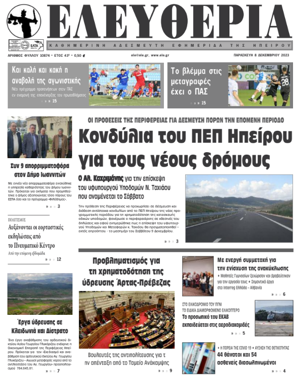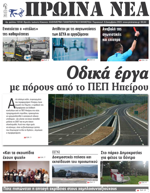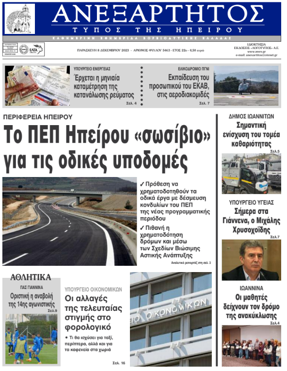 Διαβάστε στα πρωτοσέλιδα των γιαννιώτικων εφημερίδων της Παρασκευής 8 Δεκεμβρίου