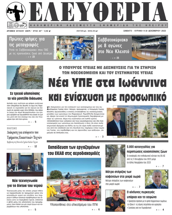 ΑρχικήTOP STORIES TOP STORIESΗΠΕΙΡΟΣ Τα πρωτοσέλιδα των γιαννιώτικων εφημερίδων 09.12.2023 0 FacebookTwitterWhatsAppEmailΤυπώνωViber Διαβάστε στα πρωτοσέλιδα των γιαννιώτικων εφημερίδων 9-10 Δεκεμβρίου TagsΓΙΑΝΝΙΩΤΙΚΕΣ ΕΦΗΜΕΡΙΔΕΣΠΡΩΤΟΣΕΛΙΔΑ FacebookTwitterWhatsAppEmailΤυπώνωViber Προηγούμενο άρθροΑποχρώσειςΕπόμενο άρθροΤα του Καίσαρος ΣΧΕΤΙΚΑ ΑΡΘΡΑ Τα πρωτοσέλιδα των γιαννιώτικων εφημερίδων TOP STORIES 10.12.2025 Τα πρωτοσέλιδα των γιαννιώτικων εφημερίδων ΗΠΕΙΡΟΣ 09.12.2025 Τα πρωτοσέλιδα των γιαννιώτικων εφημερίδων ΗΠΕΙΡΟΣ 06.12.2025 Τα πρωτοσέλιδα των γιαννιώτικων εφημερίδων ΗΠΕΙΡΟΣ 05.12.2025 Τα πρωτοσέλιδα των γιαννιώτικων εφημερίδων ΗΠΕΙΡΟΣ 04.12.2025 Τα πρωτοσέλιδα των γιαννιώτικων εφημερίδων ΗΠΕΙΡΟΣ 03.12.2025 ΣΤΗΝ ΙΔΙΑ ΚΑΤΗΓΟΡΙΑ ΑΡΤΑ -Ξεκίνησαν οι εργασίες κατασκευής του δικτύου φυσικού αερίου ΗΠΕΙΡΟΣ 10.12.2025 Κλειστός ο Δήμος Βορείων Τζουμέρκων στις 16 Δεκεμβρίου ΗΠΕΙΡΟΣ 10.12.2025 Ενημερωτικά σήματα ενάντια στη βία κατά των γυναικών ΗΠΕΙΡΟΣ 10.12.2025 Στήνεται το Χριστουγεννιάτικο δένδρο στην πλατεία – Το Σάββατο η φωταγώγηση ΗΠΕΙΡΟΣ 10.12.2025 Συνελήφθη διωκόμενος για ληστεία και φθορά ξένης ιδιοκτησίας ΗΠΕΙΡΟΣ 10.12.2025 Συντήρηση αθλητικών εγκαταστάσεων σε Λιμνοπούλα και Πανηπειρωτικό ΗΠΕΙΡΟΣ 10.12.2025 ΜΗ ΧΑΣΕΤΕ Στήνεται το Χριστουγεννιάτικο δένδρο στην πλατεία – Το Σάββατο η φωταγώγηση Εισαγγελική παρέμβαση για τις αγροτικές κινητοποιήσεις Μια νέα πρόταση για την ενοποίηση της πλατείας Ιωαννίνων Τα πρωτοσέλιδα των γιαννιώτικων εφημερίδων Εγκρίθηκε η χωροθέτηση των νέων «έξυπνων» υποδομών ΔΗΜΟΦΙΛΗ Εξαρθρώθηκε συμμορία που διακινούσε ναρκωτικά στα Γιάννενα Υ.Π.Α.Α.Τ. -Πληρωμές 3,8 δισ. για τους αγρότες το 2025 Η Μεγάλη Φωτιά της Αγίας Θεοδώρας Άρτας στον κατάλογο Άυλης Πολιτιστικής Κληρονομιάς Έκτακτη σύσκεψη για τις πληρωμές των αγροτών στο Μαξίμου Τα πρωτοσέλιδα των γιαννιώτικων εφημερίδων