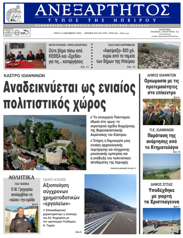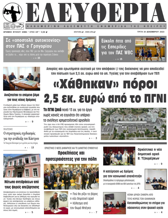 ΑρχικήTOP STORIES TOP STORIESΗΠΕΙΡΟΣ Τα πρωτοσέλιδα των γιαννιώτικων εφημερίδων 19.12.2023 0 FacebookTwitterWhatsAppEmailΤυπώνωViber Διαβάστε στα πρωτοσέλιδα των γιαννιώτικων εφημερίδων της Τρίτης 19 Δεκεμβρίου TagsΓΙΑΝΝΙΩΤΙΚΕΣ ΕΦΗΜΕΡΙΔΕΣΠΡΩΤΟΣΕΛΙΔΑ FacebookTwitterWhatsAppEmailΤυπώνωViber Προηγούμενο άρθροΓουινέα: Έκρηξη σε τερματικό σταθμό πετρελαίου –Τουλάχιστον 11 νεκροίΕπόμενο άρθροΜέτωπο αντιδράσεων από τους φορείς απεξάρτησης ΣΧΕΤΙΚΑ ΑΡΘΡΑ Τα πρωτοσέλιδα των γιαννιώτικων εφημερίδων TOP STORIES 24.12.2025 Τα πρωτοσέλιδα των γιαννιώτικων εφημερίδων ΗΠΕΙΡΟΣ 23.12.2025 Τα πρωτοσέλιδα των γιαννιώτικων εφημερίδων ΗΠΕΙΡΟΣ 19.12.2025 Τα πρωτοσέλιδα των γιαννιώτικων εφημερίδων ΗΠΕΙΡΟΣ 18.12.2025 Τα πρωτοσέλιδα των γιαννιώτικων εφημερίδων ΗΠΕΙΡΟΣ 17.12.2025 Τα πρωτοσέλιδα των γιαννιώτικων εφημερίδων ΗΠΕΙΡΟΣ 16.12.2025 ΣΤΗΝ ΙΔΙΑ ΚΑΤΗΓΟΡΙΑ Έντονες αντιδράσεις στα κεντρικά προκαλεί το πρωτοσέλιδο των «Πρωινών Νέων» ΗΠΕΙΡΟΣ 24.12.2025 Επιτυχημένη παρουσίαση των αποτελεσμάτων του προγράμματος GINGER για την πρόληψη της άνοιας ΗΠΕΙΡΟΣ 24.12.2025 Λήγει στις 31 Δεκεμβρίου η προθεσμία για τα τέλη κυκλοφορίας 2026 TOP STORIES 24.12.2025 Ηλεκτρονική βεβαίωση παραβάσεων από τη Δημοτική Αστυνομία Ιωαννίνων ΗΠΕΙΡΟΣ 24.12.2025 Χριστουγεννιάτικες μελωδίες και ευχές στο Δημαρχείο Ιωαννίνων ΗΠΕΙΡΟΣ 24.12.2025 Ιωάννινα: Συνελήφθη ιδιοκτήτης καταστήματος για διάθεση αλκοόλ σε ανηλίκους ΗΠΕΙΡΟΣ 24.12.2025 ΜΗ ΧΑΣΕΤΕ Έντονες αντιδράσεις στα κεντρικά προκαλεί το πρωτοσέλιδο των «Πρωινών Νέων» Λήγει στις 31 Δεκεμβρίου η προθεσμία για τα τέλη κυκλοφορίας 2026 Χριστουγεννιάτικη έξοδος με αυξημένη κίνηση και αγροτικά μπλόκα Ανοιχτά τα καταστήματα την παραμονή Χριστουγέννων Κακοκαιρία τα Χριστούγεννα – Ισχυρά φαινόμενα σε πολλές περιοχές ΔΗΜΟΦΙΛΗ Προφυλακισμένοι οι δώδεκα κατηγορούμενοι για διακίνηση ναρκωτικών σε σχολεία Σεισμός 6,1 Ρίχτερ στην Ταϊβάν χωρίς άμεσες αναφορές ζημιών Ηλεκτρονική βεβαίωση παραβάσεων από τη Δημοτική Αστυνομία Ιωαννίνων Συντριβή ιδιωτικού τζετ στην Τουρκία: Νεκρός ο αρχηγός του Γενικού Επιτελείου Στρατού της Λιβύης Επιτυχημένη παρουσίαση των αποτελεσμάτων του προγράμματος GINGER για την πρόληψη της άνοιας
