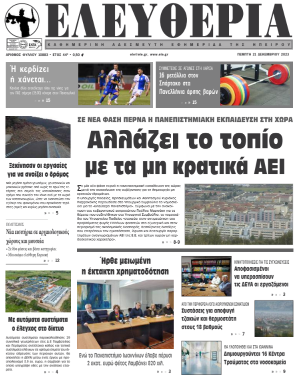 ΑρχικήΕΙΔΗΣΕΙΣΗΠΕΙΡΟΣ ΗΠΕΙΡΟΣ Τα πρωτοσέλιδα των γιαννιώτικων εφημερίδων 21.12.2023 0 FacebookTwitterWhatsAppEmailΤυπώνωViber Διαβάστε στα πρωτοσέλιδα των γιαννιώτικων εφημερίδων της Πέμπτης 21 Δεκεμβρίου TagsΓΙΑΝΝΙΩΤΙΚΕΣ ΕΦΗΜΕΡΙΔΕΣΠΡΩΤΟΣΕΛΙΔΑ FacebookTwitterWhatsAppEmailΤυπώνωViber Προηγούμενο άρθροΜε campus η νέα δομή της επαγγελματικής εκπαίδευσηςΕπόμενο άρθροΑποφασισμένοι να υπερασπίσουν τις ΔΕΥΑ οι εργαζόμενοι ΣΧΕΤΙΚΑ ΑΡΘΡΑ Τα πρωτοσέλιδα των γιαννιώτικων εφημερίδων TOP STORIES 07.11.2025 Τα πρωτοσέλιδα των γιαννιώτικων εφημερίδων ΗΠΕΙΡΟΣ 06.11.2025 Τα πρωτοσέλιδα των γιαννιώτικων εφημερίδων ΗΠΕΙΡΟΣ 05.11.2025 Τα πρωτοσέλιδα των γιαννιώτικων εφημερίδων ΗΠΕΙΡΟΣ 04.11.2025 Τα πρωτοσέλιδα των γιαννιώτικων εφημερίδων TOP STORIES 01.11.2025 Τα πρωτοσέλιδα των γιαννιώτικων εφημερίδων ΗΠΕΙΡΟΣ 31.10.2025 ΣΤΗΝ ΙΔΙΑ ΚΑΤΗΓΟΡΙΑ Χωρίς πινακίδες παραμένουν χιλιάδες δίκυκλα ΗΠΕΙΡΟΣ 07.11.2025 Ενστάσεις δικυκλιστών για τις θερμοπλαστικές διαβάσεις ΗΠΕΙΡΟΣ 07.11.2025 Τα πρωτοσέλιδα των γιαννιώτικων εφημερίδων TOP STORIES 07.11.2025 Δύο ταυτοποιήσεις για κλοπές χρυσαφικών στην Άρτα ΗΠΕΙΡΟΣ 06.11.2025 Επιστροφή των εργαζομένων του «Γαλαξία» στις θέσεις τους ΗΠΕΙΡΟΣ 06.11.2025 Διαμαρτυρία των εργαζόμενων σε τουρισμό – επισιτισμό ΗΠΕΙΡΟΣ 06.11.2025 ΜΗ ΧΑΣΕΤΕ Χωρίς πινακίδες παραμένουν χιλιάδες δίκυκλα Ενστάσεις δικυκλιστών για τις θερμοπλαστικές διαβάσεις Τα πρωτοσέλιδα των γιαννιώτικων εφημερίδων Νέος Κώδικας Δήμων και ΔΕΥΑ στο συνέδριο της ΚΕΔΕ Υπεγράφη συμφωνία Energean, ExxonMobil και Helleniq Energy για γεώτρηση υδρογονανθράκων στο Ιόνιο ΔΗΜΟΦΙΛΗ Ενστάσεις δικυκλιστών για τις θερμοπλαστικές διαβάσεις Τα του Καίσαρος… Ματς-κλειδί για τον ΠΑΣ στη Θεσσαλονίκη Χωρίς πινακίδες παραμένουν χιλιάδες δίκυκλα Καταθέτει στην εξεταστική για τον ΟΠΕΚΕΠΕ ο Μάκης Βορίδης