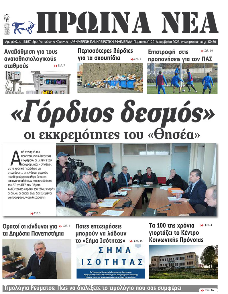 Διαβάστε στα πρωτοσέλιδα των γιαννιώτικων εφημερίδων της Παρασκευής 29 Δεκεμβρίου
